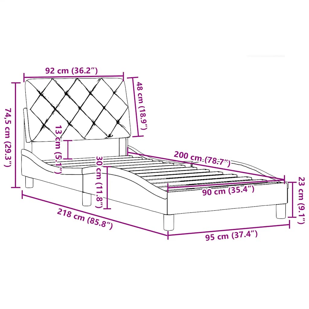 Rám postele bez matrace tmavě šedý 90 x 200 cm textil