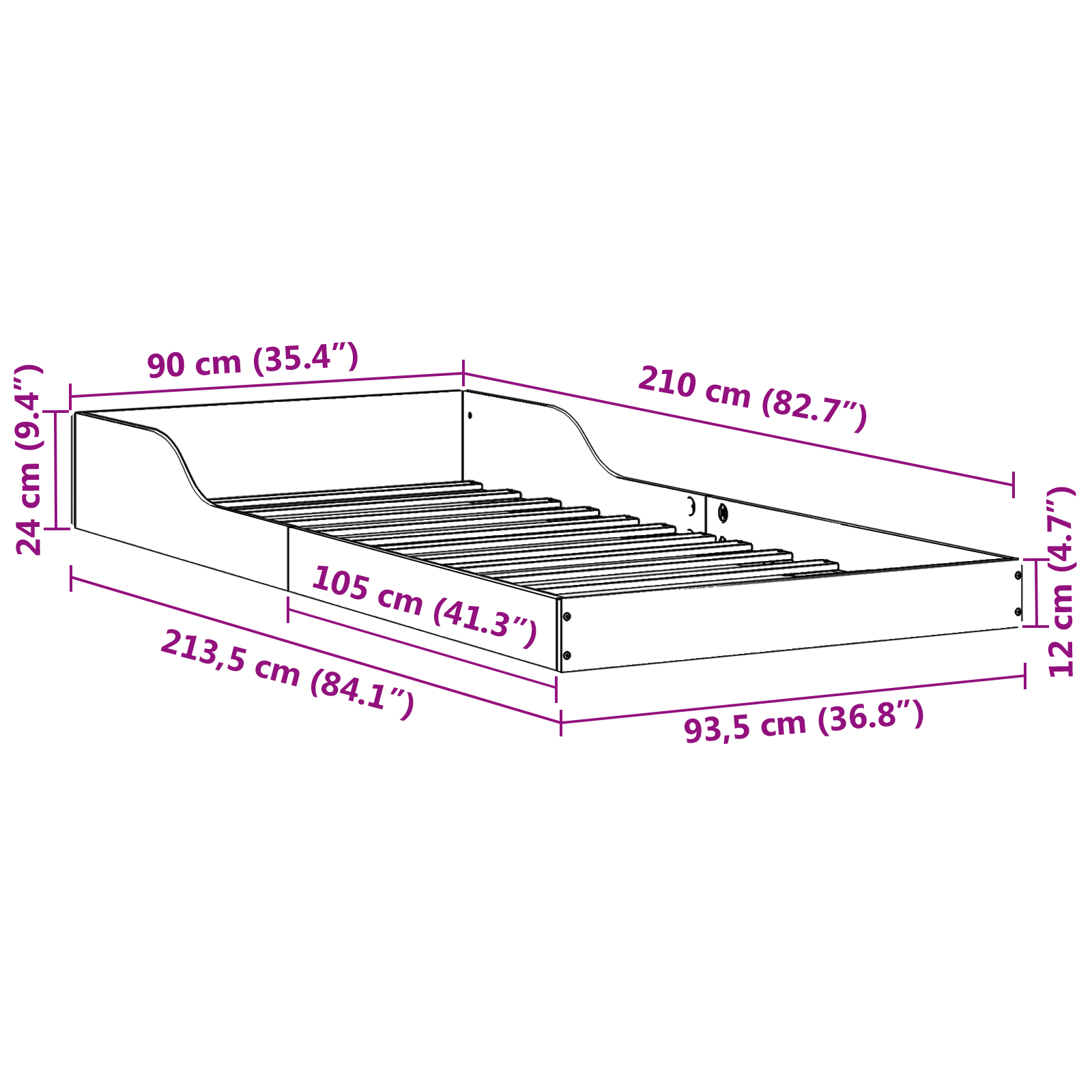 Rám postele Bílá 90 x 210 cm Masivní borové dřevo