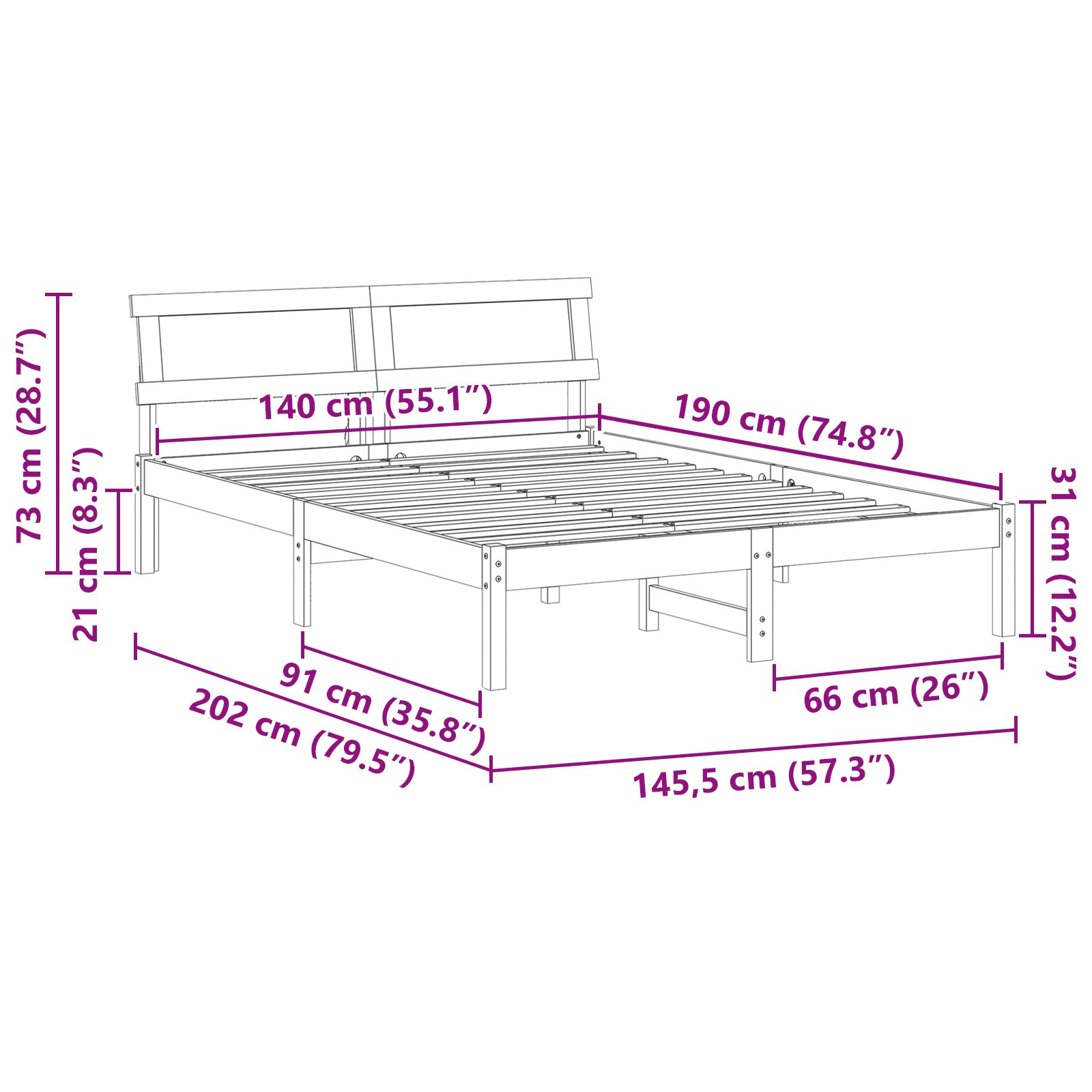 Rám postele s čelo Hnědá 140 x 190 cm Masivní borové dřevo