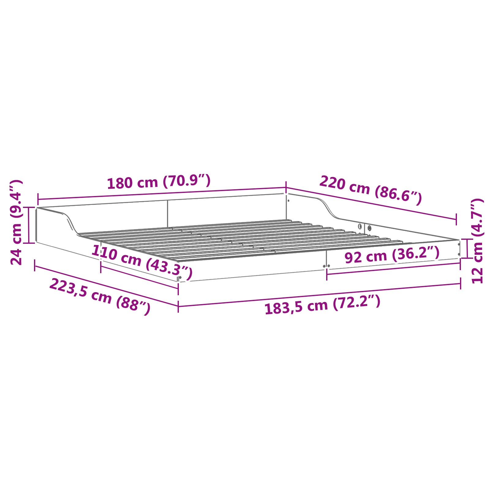 • Celkové rozměry: 223,5 x 183,5 x 24 cm (D x Š x V)
