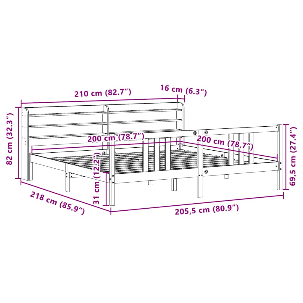 Rám postele s čelem 200 x 200 cm masivní borové dřevo