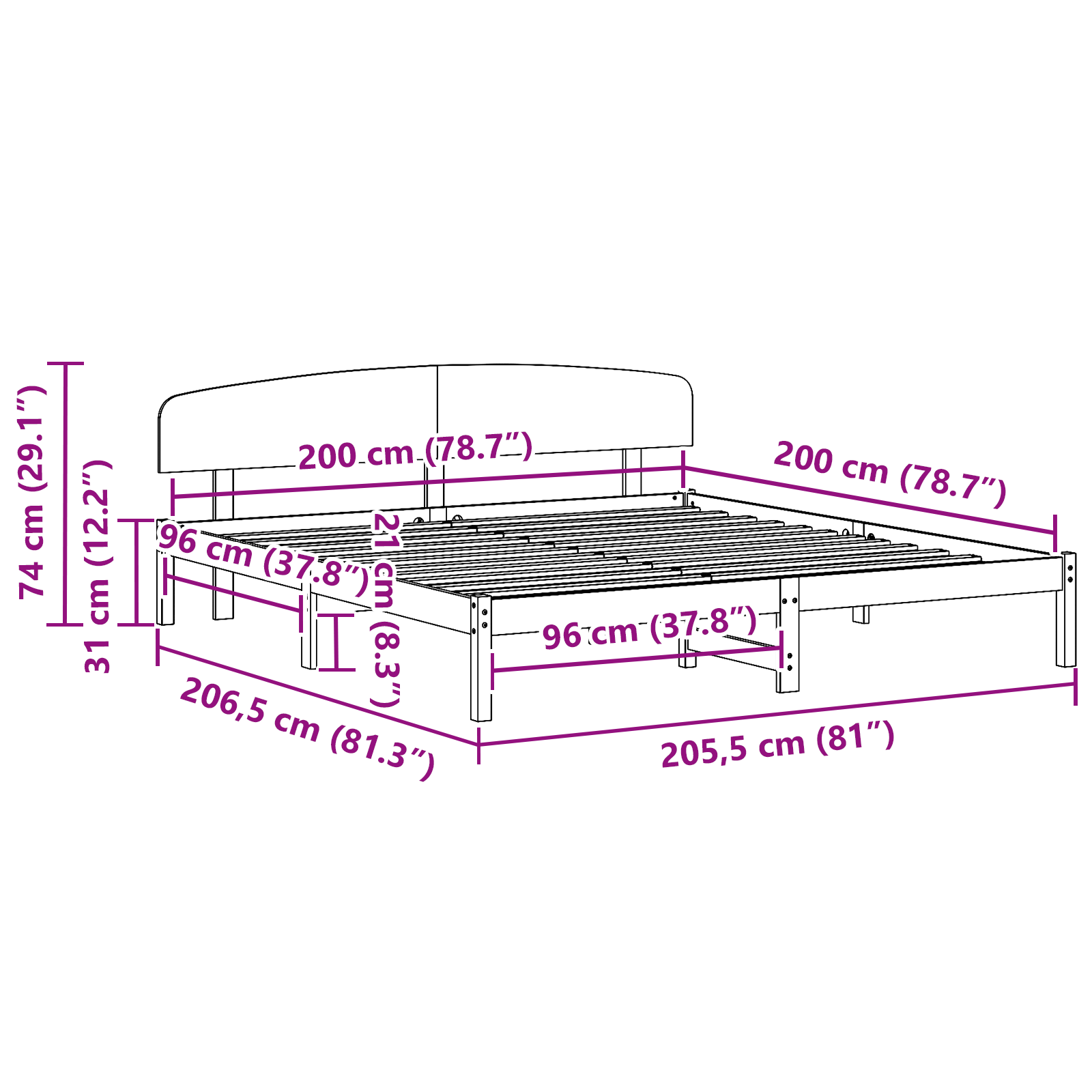• Velikost matrace: Císařská postel (200 cm x 200 cm nebo 79" x 79")