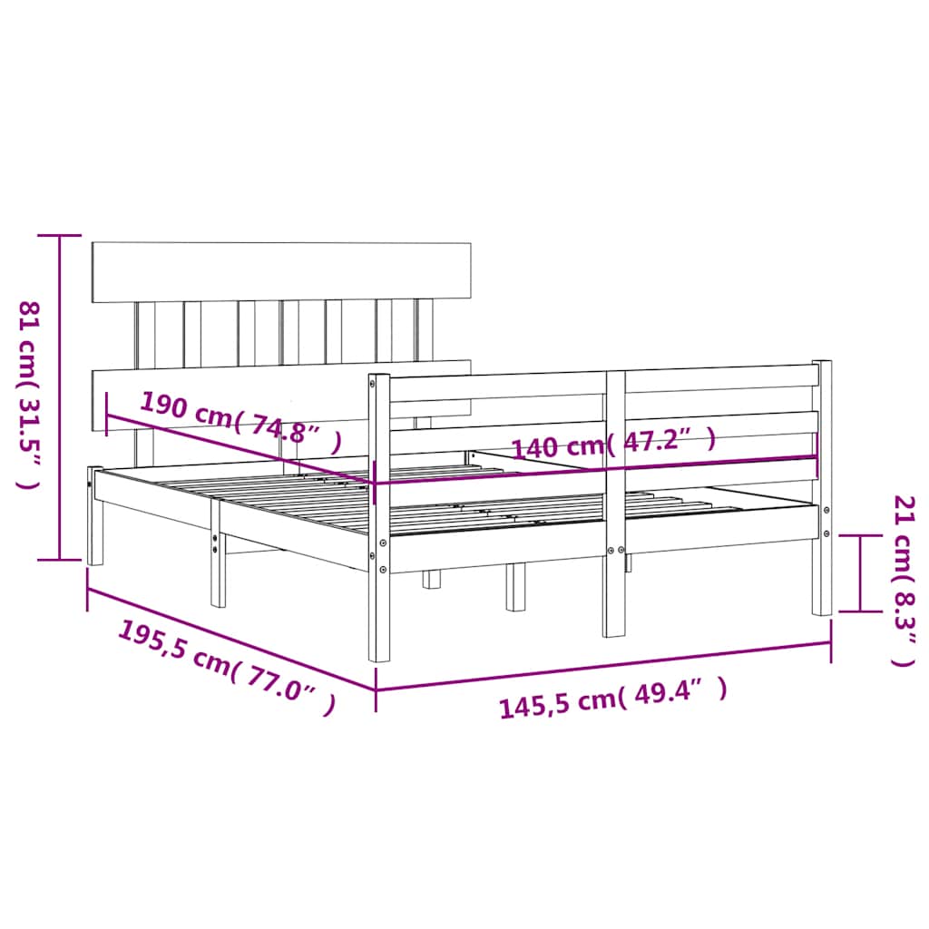 Rám postele s čelem bílý 140 x 190 cm masivní dřevo