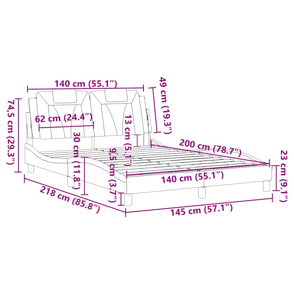 Rám postele Viana bez matrace černý a bílý 140 x 200 cm umělá kůže