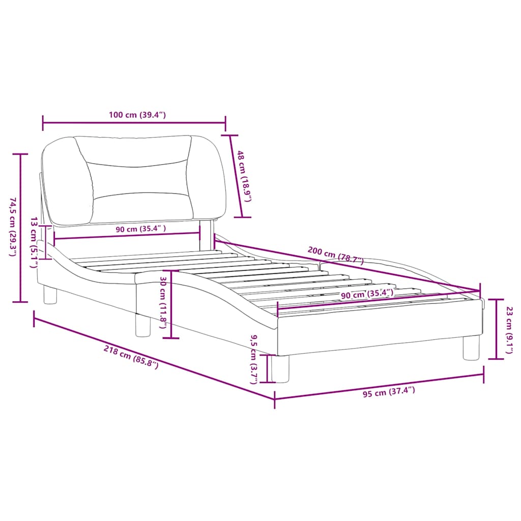Rám postele bez matrace Hvar černý a bílý 90 x 200 cm umělá kůže