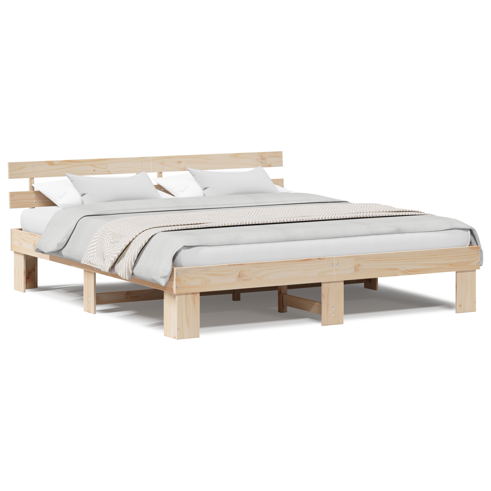 Rám postele s čelo Přírodní 200 x 200 cm Masivní borové dřevo
