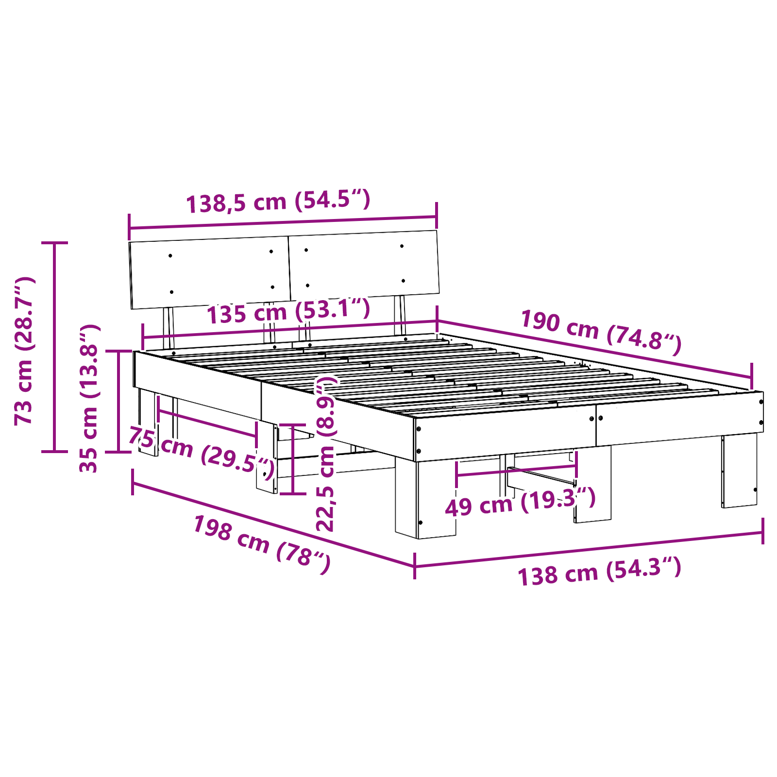 • Velikost matrace: Britská dvojitá postel (135 cm x 190 cm nebo 54" x 75")