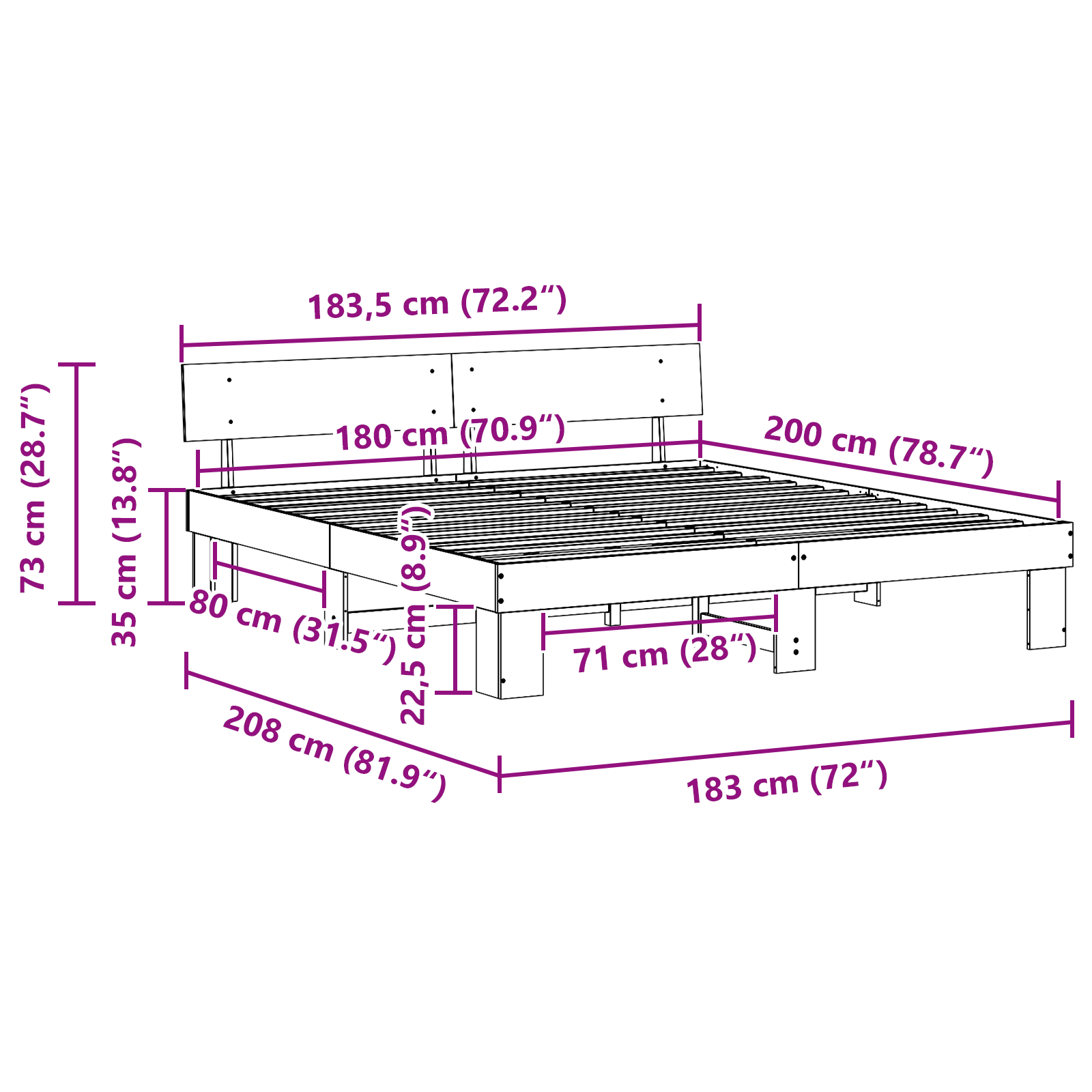 • Velikost matrace: Super king manželská postel (180 cm x 200 cm nebo 71" x 79")