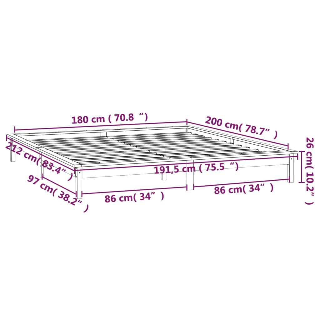 Rám postele s LED světlem 180 x 200 cm Super King masivní dřevo
