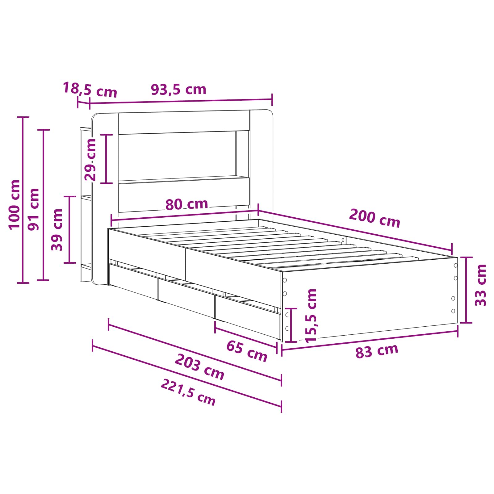 Tento moderní rám postele se zabudovaným úložištěm spojuje chytré funkce a stylový vzhled, aby pokryl všechny vaše potřeby pro uspořádání v ložnici. Ideální pro ty, kteří chtějí co nejvíc využít prostor, má tento rám vestavěné zásuvky, které nabízejí elegantní řešení pro ukládání povlečení, oblečení nebo jiných nezbytností do ložnice.