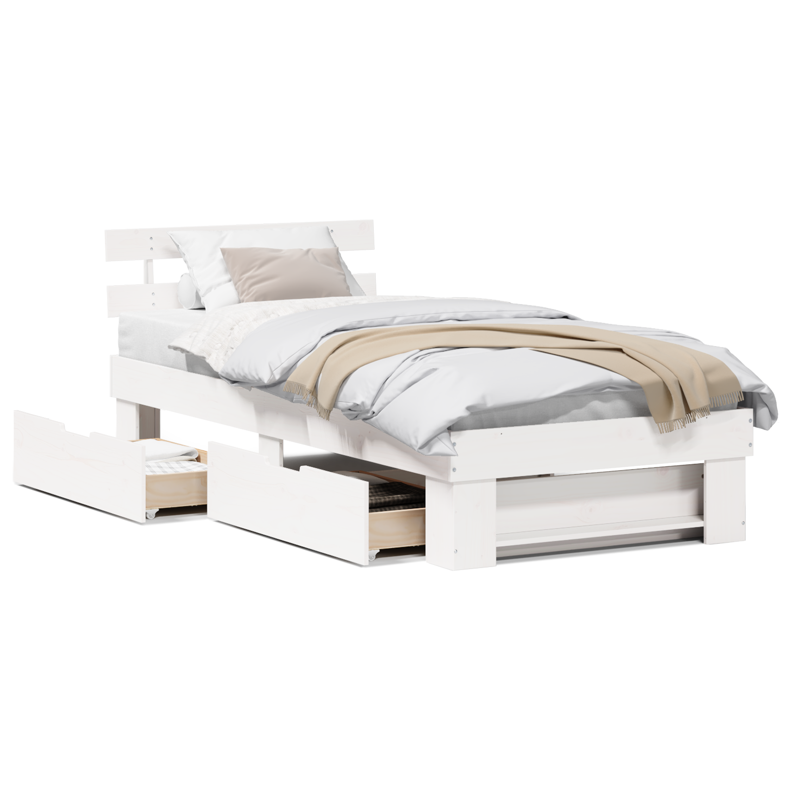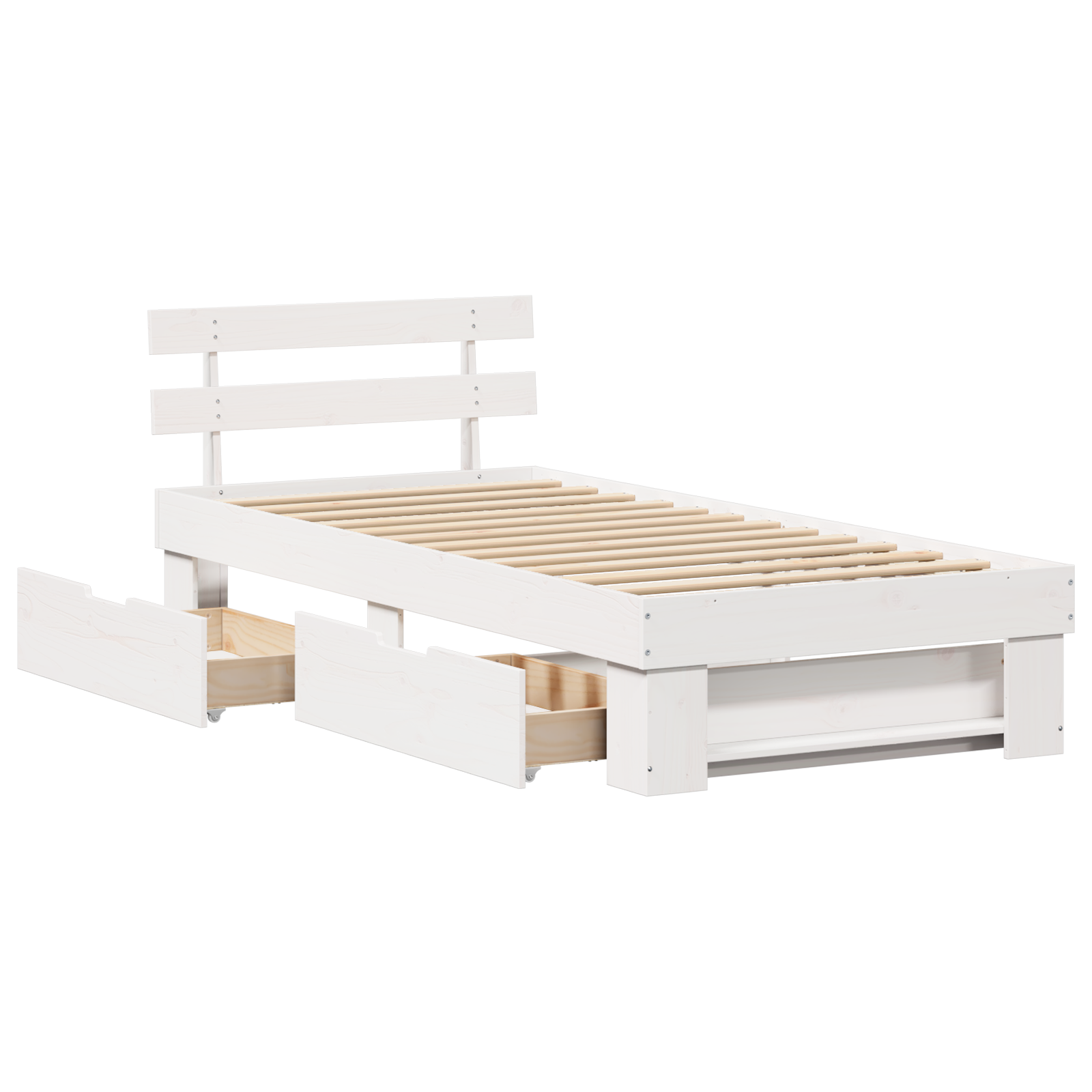Rám postele s čelo Bílá 90 x 200 cm Masivní borové dřevo