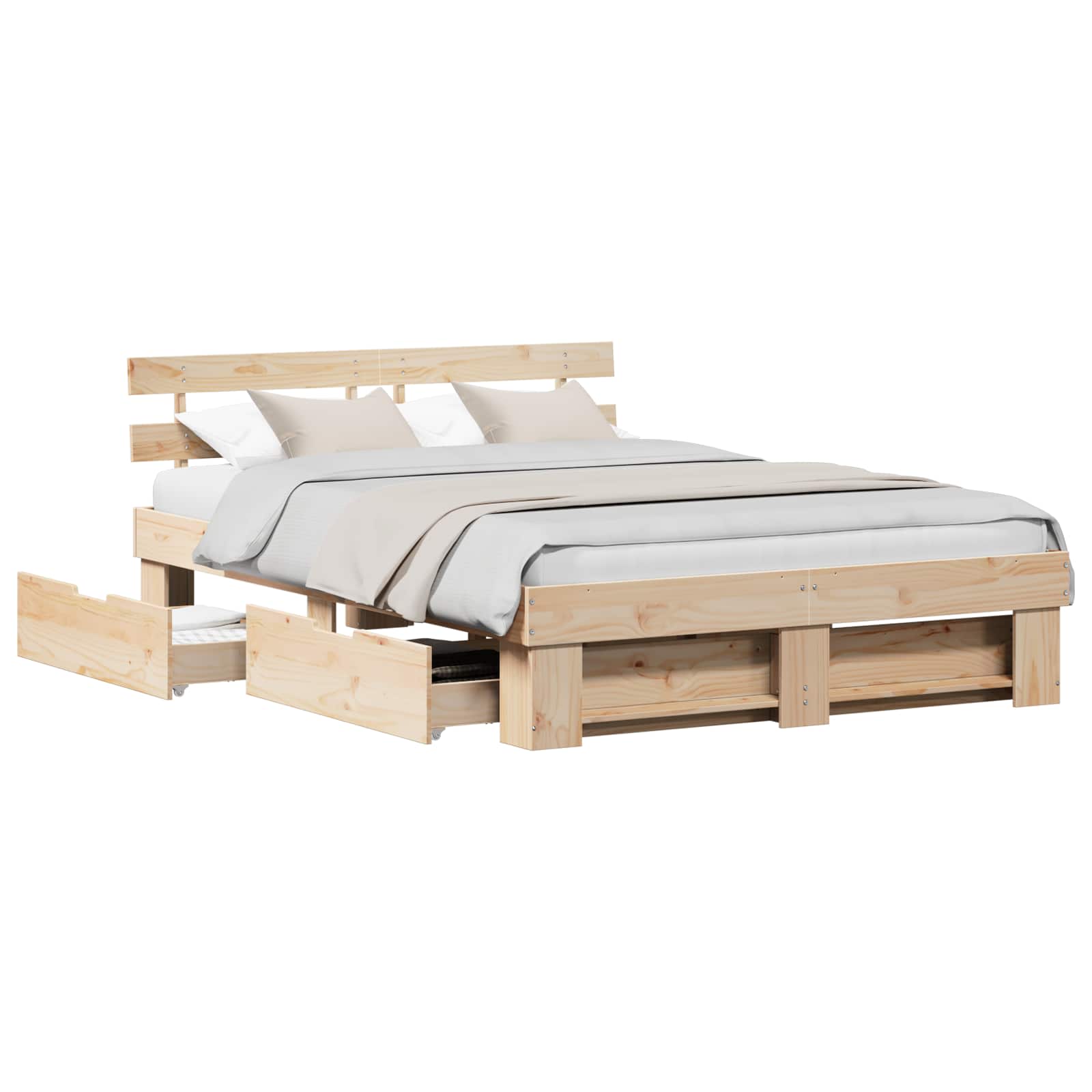 Rám postele s čelo Hnědá 150 x 200 cm Masivní borové dřevo
