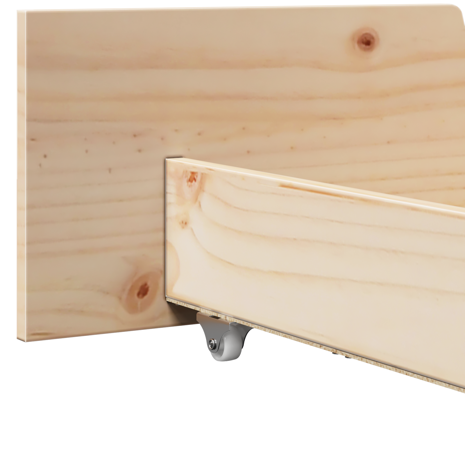 • Konstruované čelo a rám z masivního borového dřeva vytvářejí stabilní konstrukci pro každodenní používání. Každý prvek, od latí po čelo, zajišťuje odolnost a pohodlný spánek od více let.