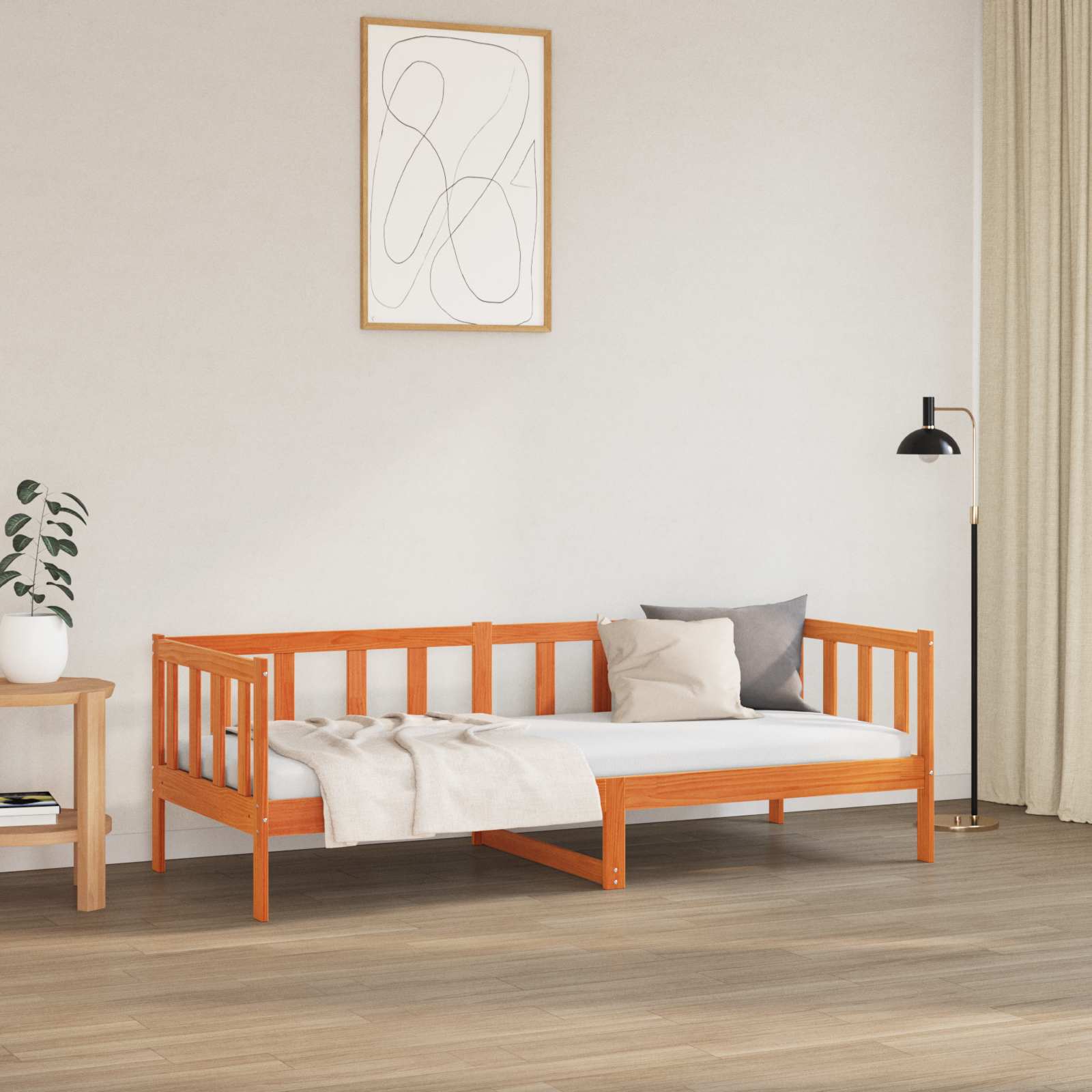 Dřevěný rám postele spojuje moderní styl a funkčnost, takže se hodí do jakékoli ložnice. Je elegantní, s minimalistickým designem, a bez problému zapadne do různých estetických stylů, protože nabízí jak styl, tak praktičnost. Vyrobený z kvalitního borového dřeva, známého svou pevností a krásou, zvyšuje tento rám vizuální přitažlivost vašeho prostoru a zajišťuje dlouhou životnost. Je ideální pro sezónní změny během zimy a jara a podporuje každodenní používání, takže každý si může dopřát dobrý noční spánek.