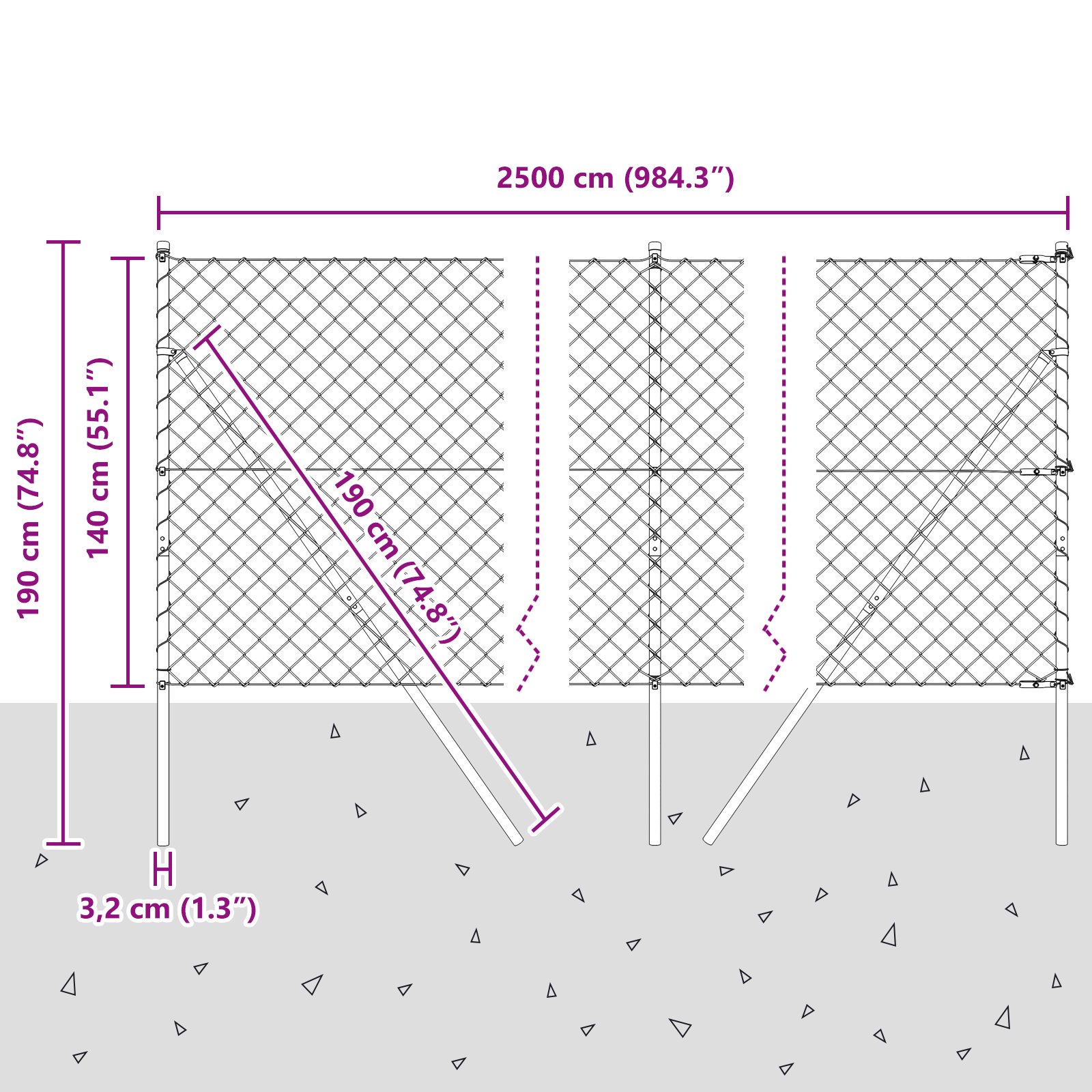 Plotový sloupek. Šedá 25 x 1,4 m (60 x 60 mm síť) Ocel a PVC