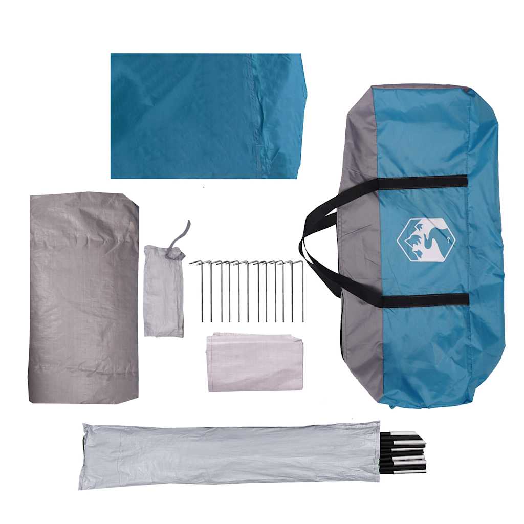 Komplexní vodotěsnost: Tento kempingový stan je vyroben z polyesteru s PU povlakem, je nepromokavý a odolný proti větru. Podlepené švy účinně zabraňují pronikání dešťové vody, zatímco odolná podlážka pomáhá udržovat suchý a příjemný interiér.