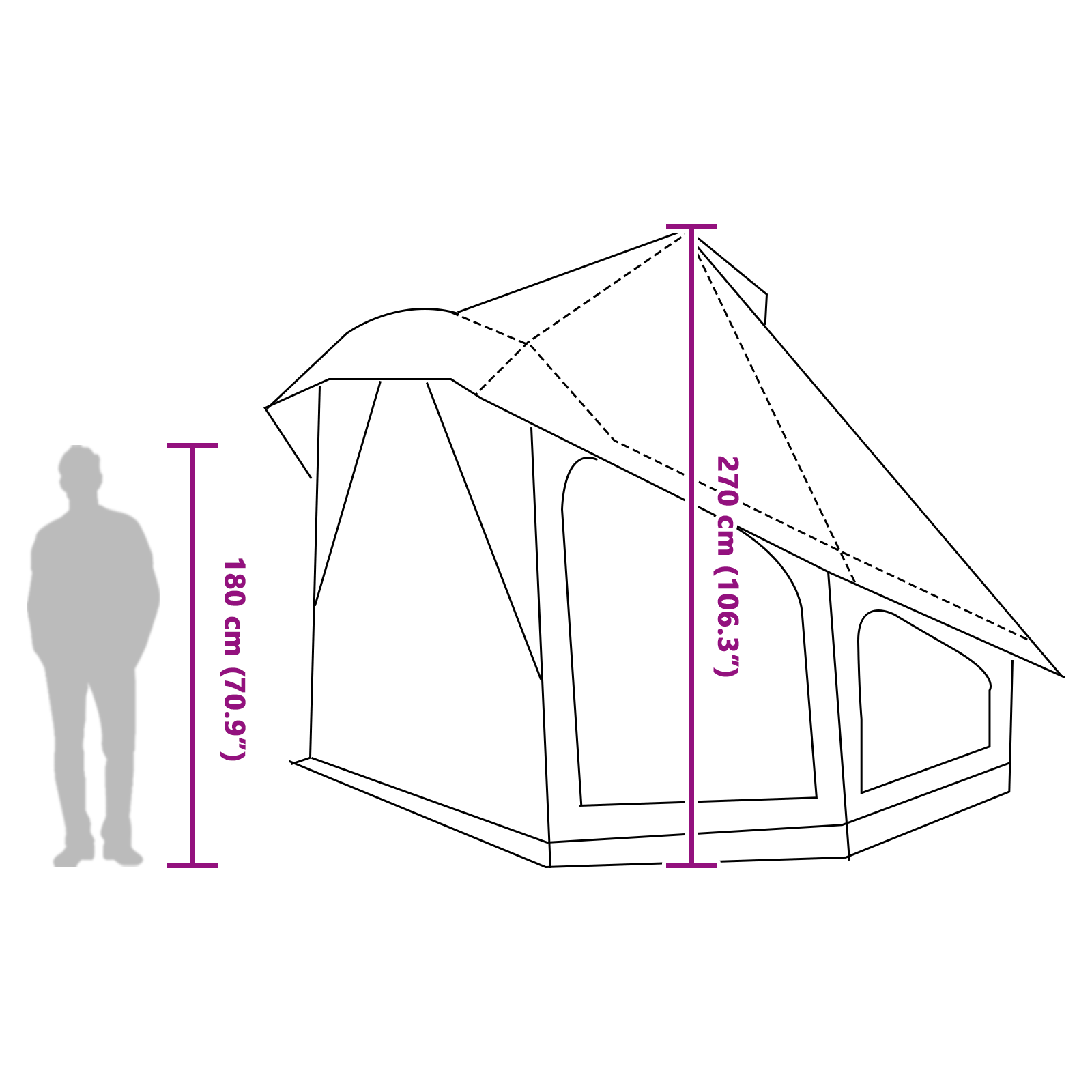 • Těsné funkce: Se zipem na vstupu udržuje stan vchod těsný a zabraňuje průvanu. Skládací tvar ti dovolí snadno ho sbalit na malý objem pro pohodlné cestování, což činí rychlé úniky naprostou pohodu.
