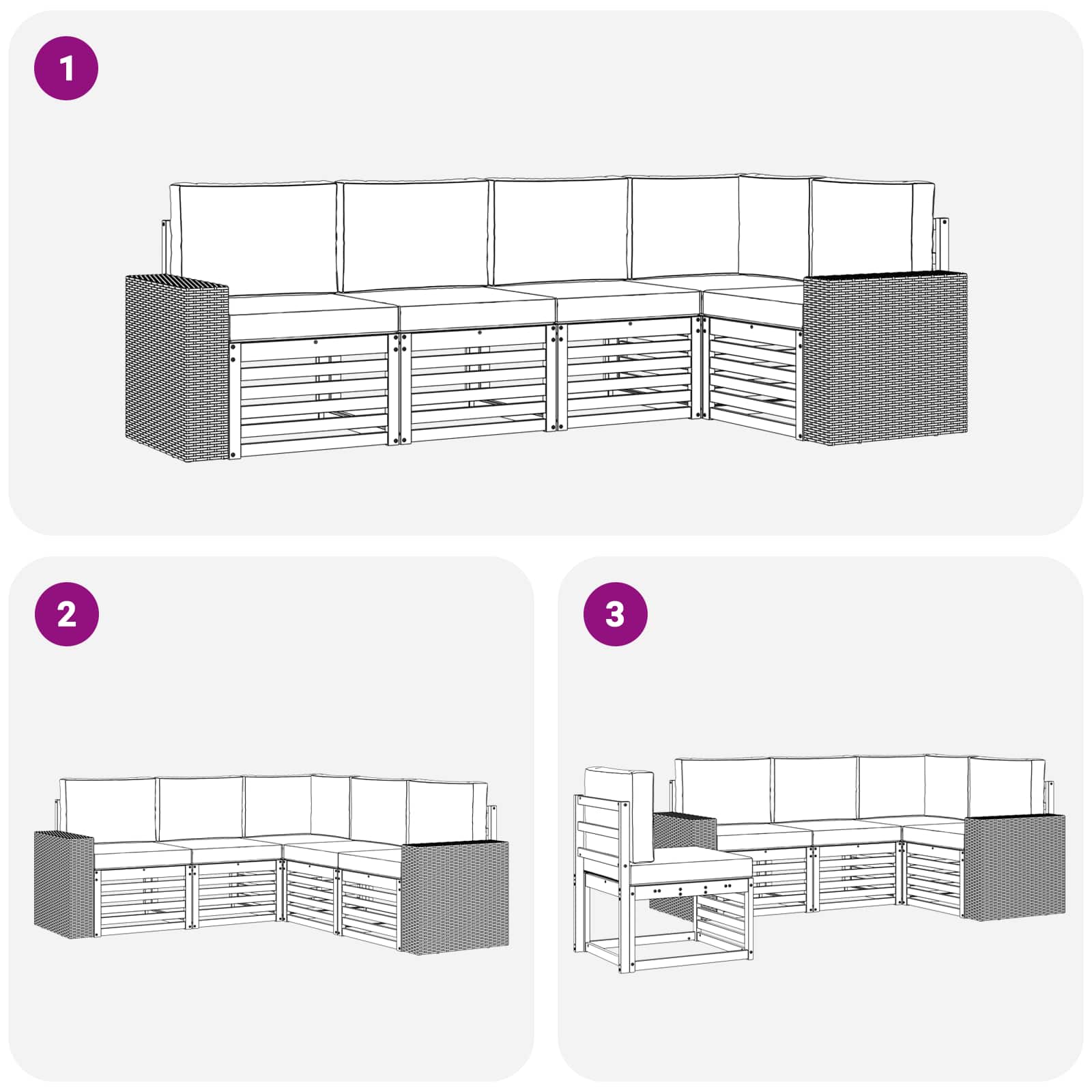 • Pohodlí a variabilita: Modulární design dovoluje flexibilní konfigurace pro různé prostory a potřeby. Skvělá pro relaxaci či společenské akce, tato souprava se lehce přizpůsobí jakémukoli venkovnímu prostředí a maximálně zvyšuje pohodlí.