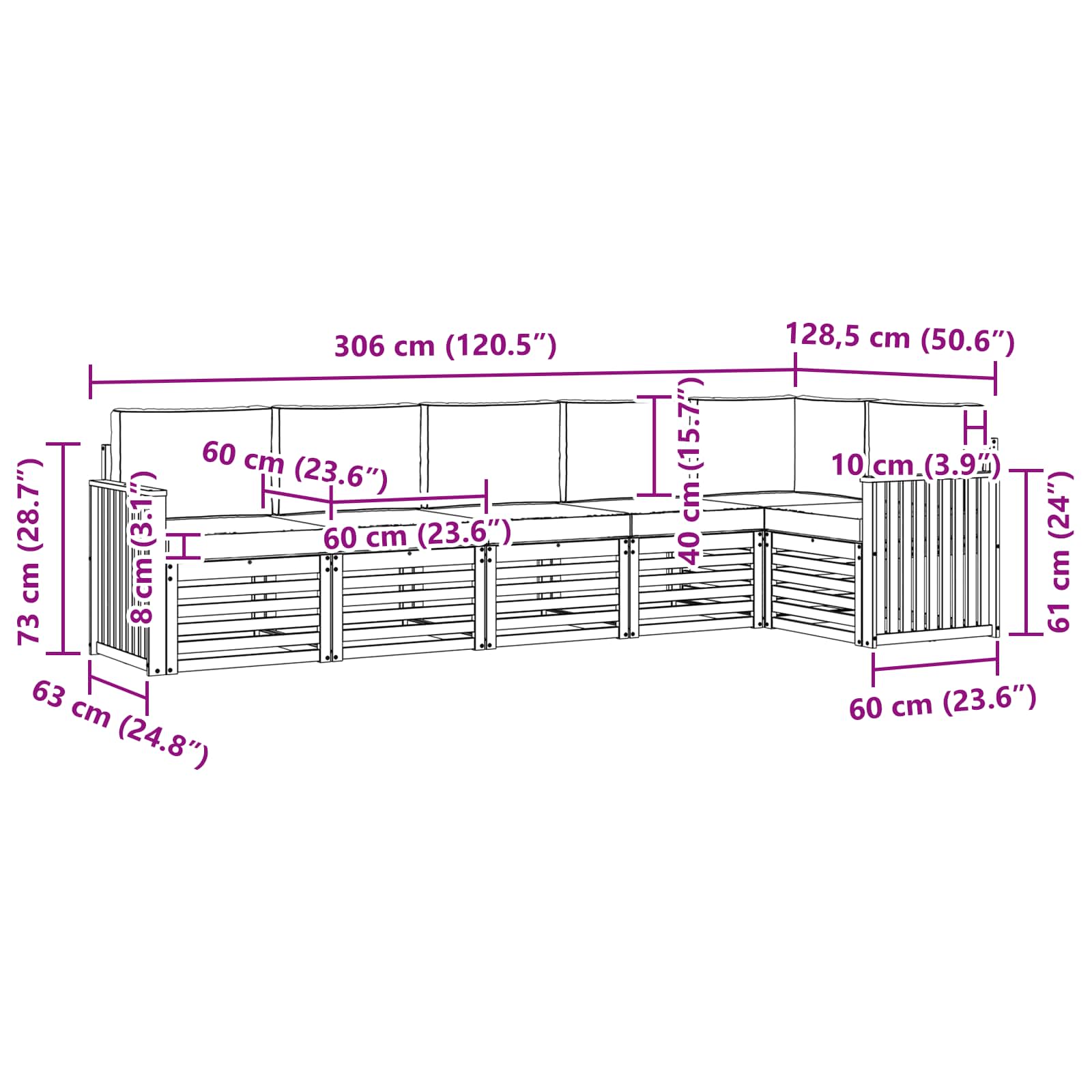 • 6 x Sedací polštář: 60 x 60 x 8 cm (D x Š x V)