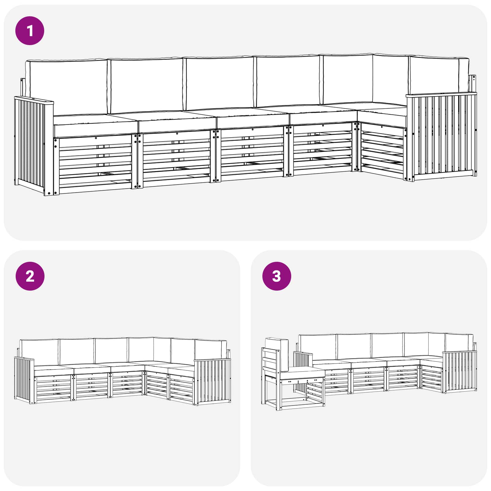 • Pohodlí a variabilita: Modulární design umožňuje flexibilní uspořádání, které se přizpůsobí různým prostorům a potřebám. Perfektní pro relaxaci nebo společenské chvíle, tento set se lehce přizpůsobí jakémukoli venkovnímu prostředí.