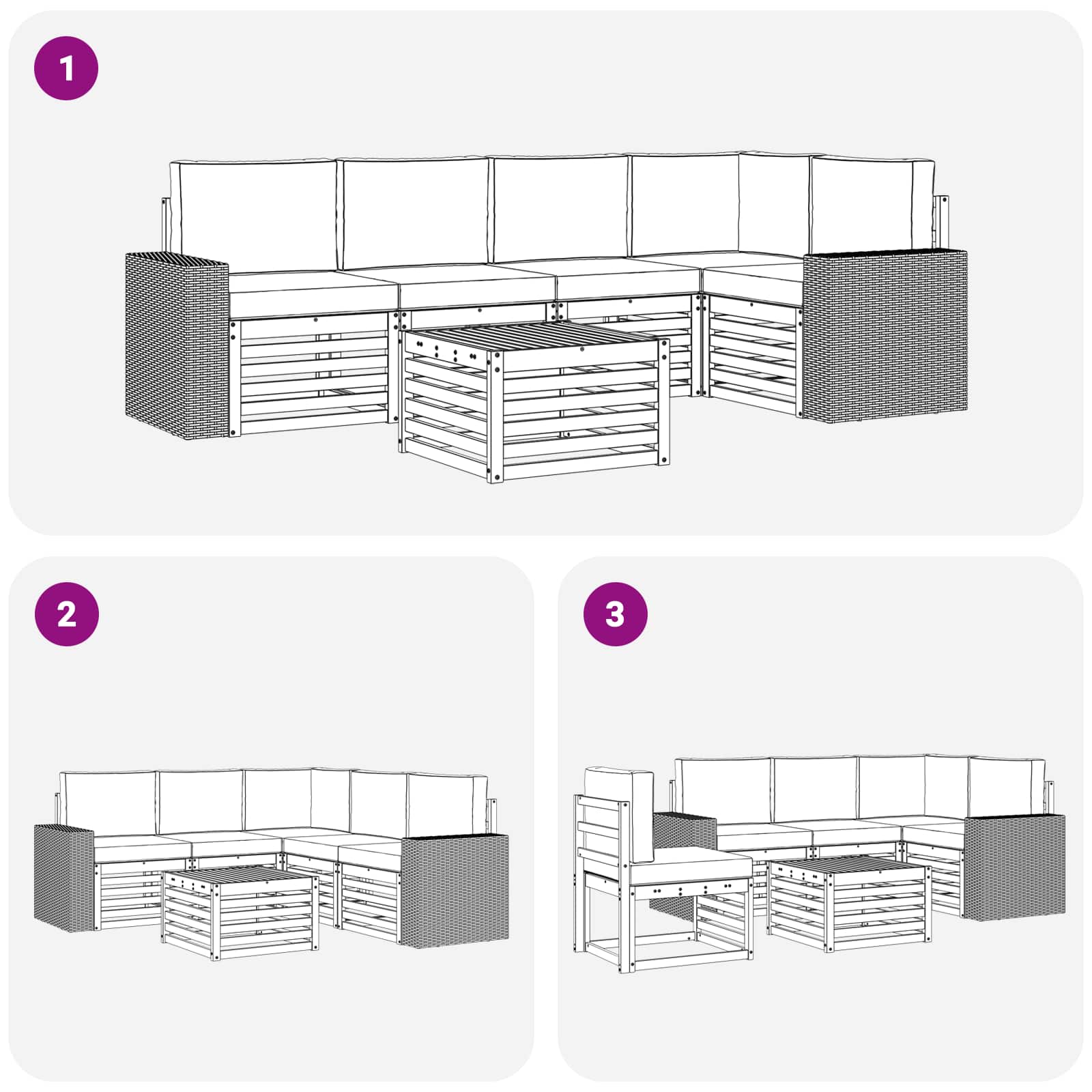 • Pohodlí a všestrannost: Modulární design umožňuje flexibilní uspořádání vhodné pro různé prostory. Ideální pro odpočinek, společenské akce nebo klidné chvíle s knihou, tato souprava se snadno přizpůsobí vašim potřebám.