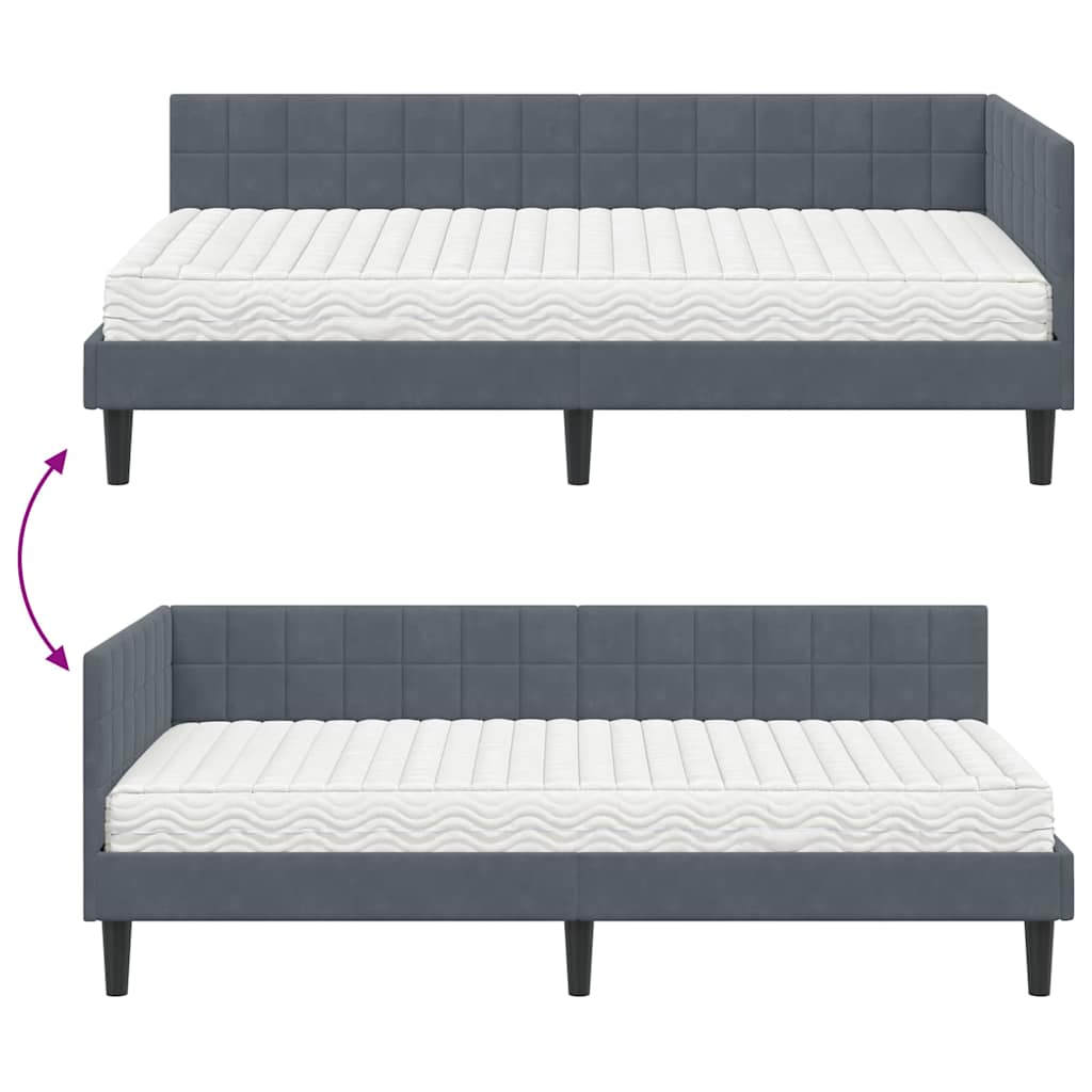 Rohový rám postele s matrací s čelo 2 pcs Šedá samet