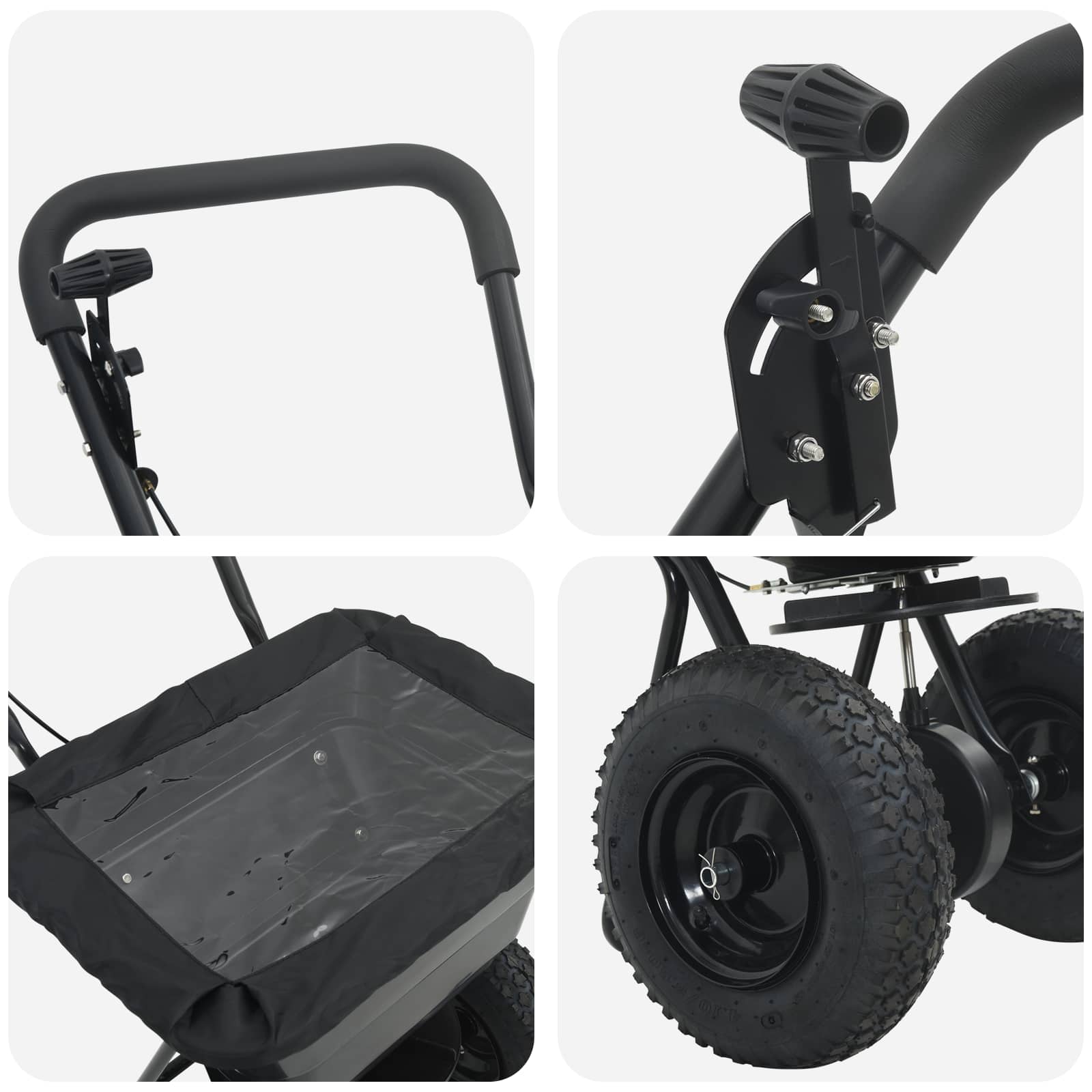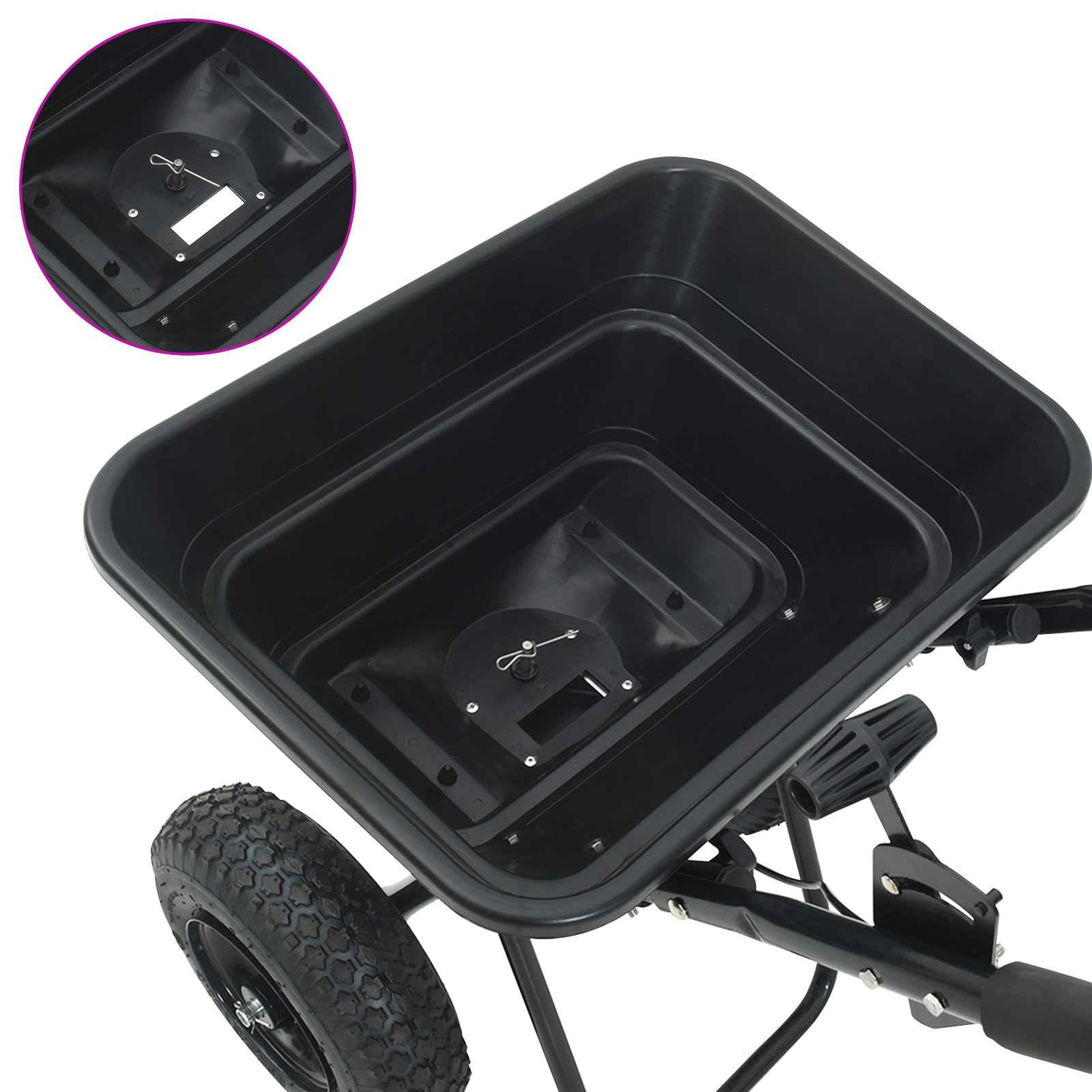 • Funkční komponenty Tohle rozmetadlo má pohodlnou rukojeť a jednoduchou manipulaci. Tyhle prvky zajišťují pohodlné použití, které snižuje námahu a dává vám dobrou kontrolu. Široký zásobník usnadňuje naplnění semeny nebo hnojivem, a rovnoměrný rozptylovací mechanismus garantuje, že pokrytí vaší zahrady nebo trávníku je pořád stejné.
