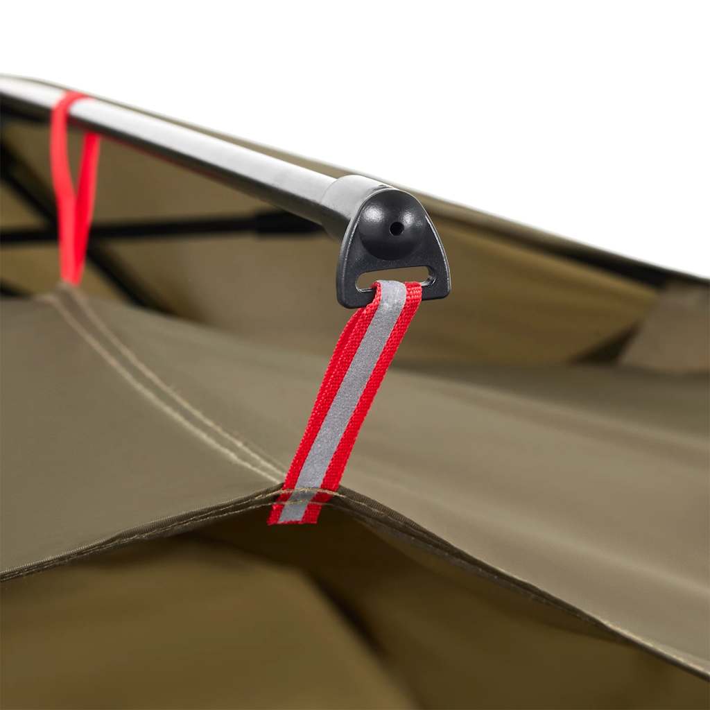 Rychloupínací systém: Postavte stan snadno a bez námahy pomocí rychloupínacího systému! Stan položte na zem, roztáhněte předem sestavené tyče, dokud nezapadnou na své místo, a vše je hotovo!