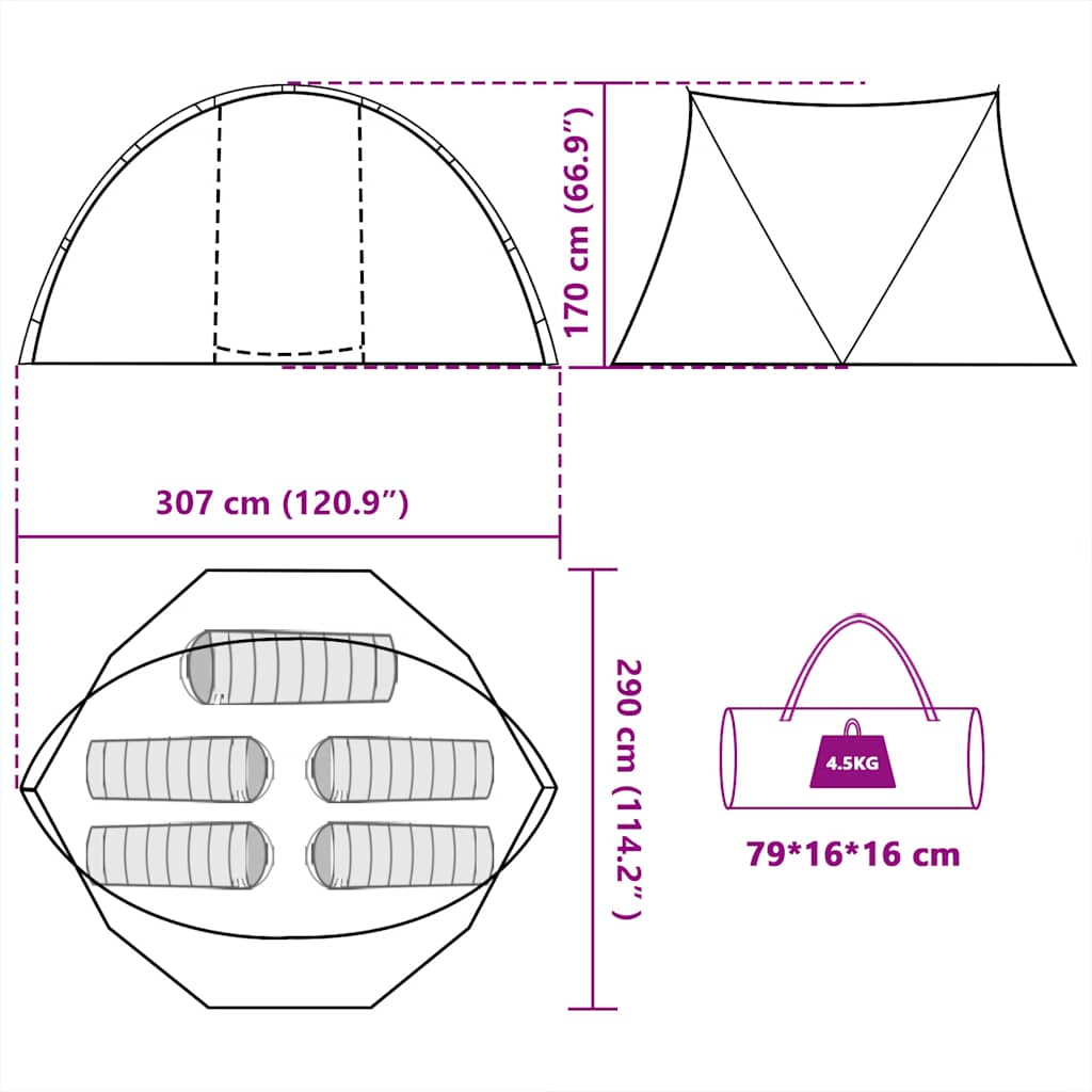 Snadné stavění i balení: Díky vysoce flexibilním a lehkým tyčím ze skelných vláken a praktickému systému spojování pomocí kolíků a kroužků je stavění i balení stanu hračkou.