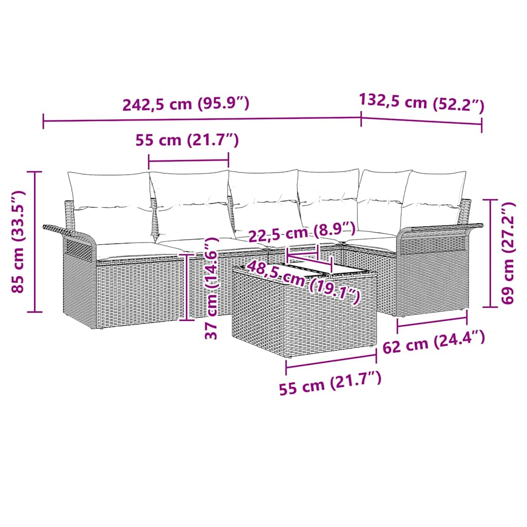 Sada zahradních pohovek s polštářem 6 pcs polyratan