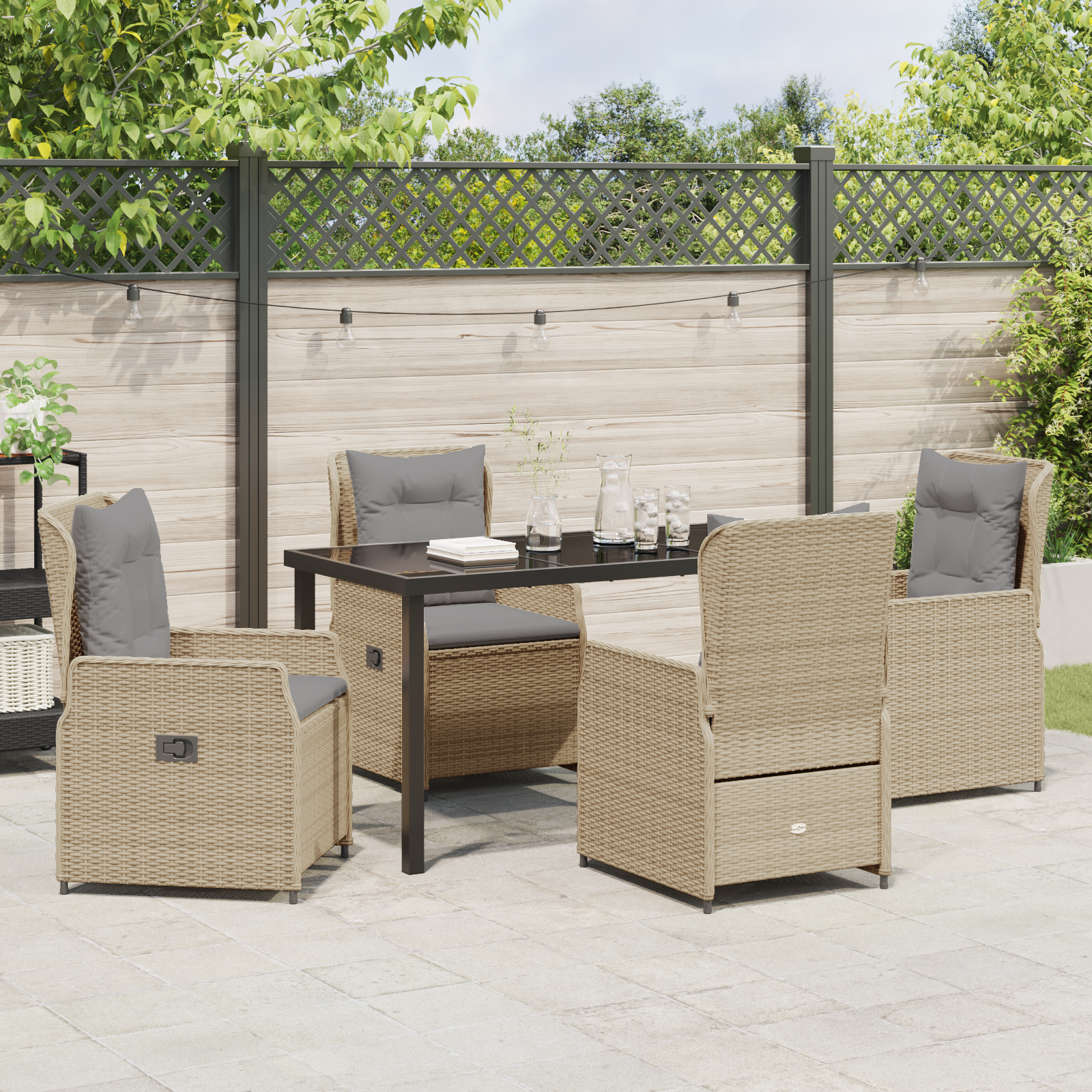 Tento moderní zahradní jídelní set je perfektní mix stylu a funkčnosti pro jakýkoli venkovní prostor. Zdůrazňuje čisté linie a elegantní prvky. Jeho moderní design vám skvěle doplní zahradu nebo terasu, ideální pro rodinná setkání nebo intimní večeře venku. Hlavní materiál, poly ratan, má hladkou texturu, díky které se krásně hodí do každého prostředí, a zároveň poskytuje spolehlivé pohodlí. Vylepšete si tak venkovní jídelní zážitek kombinací moderní estetiky a praktičnosti.