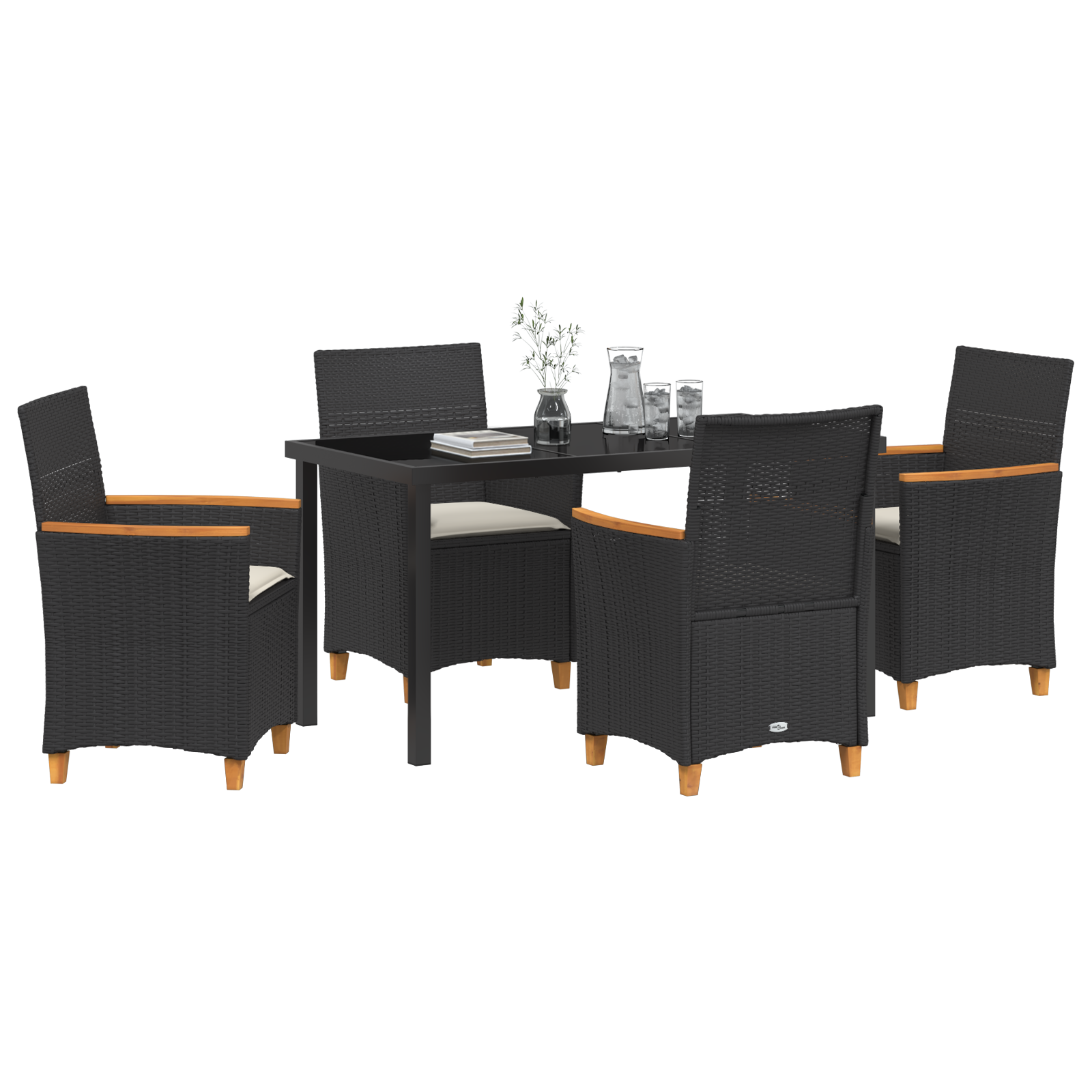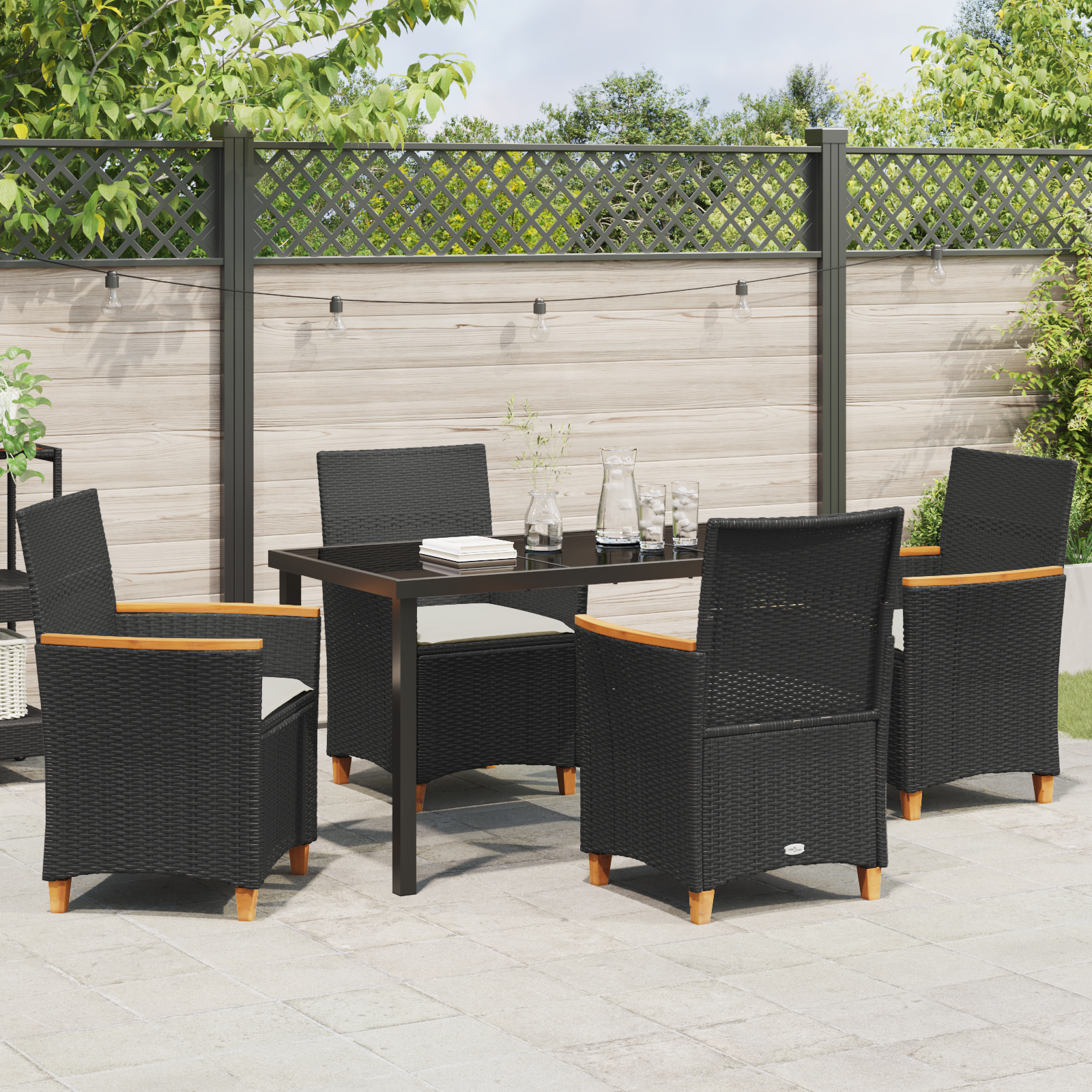 Tento zahradní jídelní set přetvoří jakýkoli venkovní prostor na moderní a funkční jídelnu. Elegantní přímé linie a minimalistický styl nabízejí ideální kombinaci estetiky a užitnosti, takže je to skvělé místo pro jídlo s rodinou nebo pořádání zahradních večírků. Kombinace poly ratanu a oceli vytváří stylový a spolehlivý set pro různá venkovní prostředí. Okouzlující hnědé odstíny a skleněná deska mu dodávají současný nádech a zvyšují přitažlivost zahrad a teras.