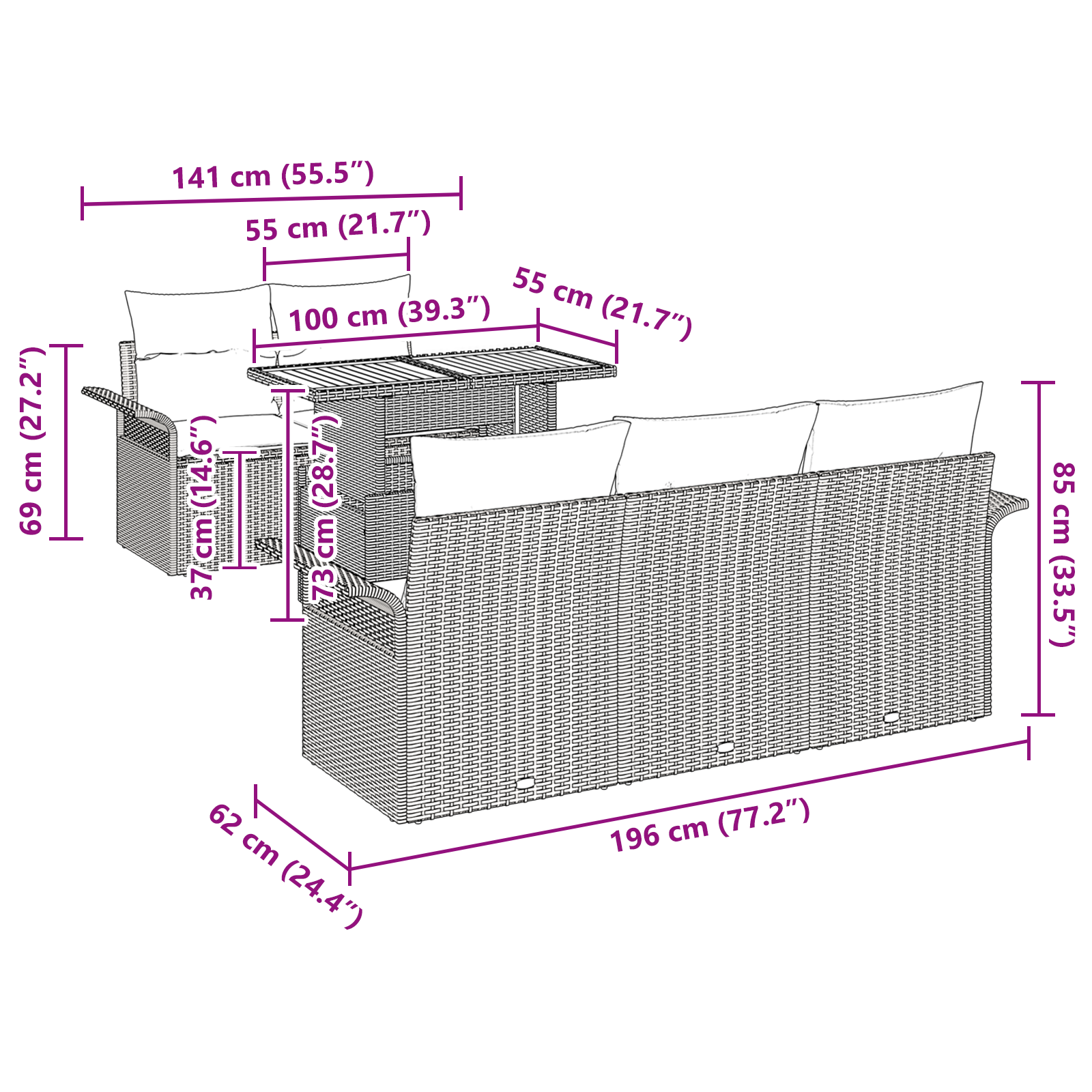• Komplikované prvky: Set obsahuje užitečné díly jako pohodlné opěrky a polštáře se zipem pro snadnou údržbu. Každý prvek je navržen pro maximální pohodlí.
