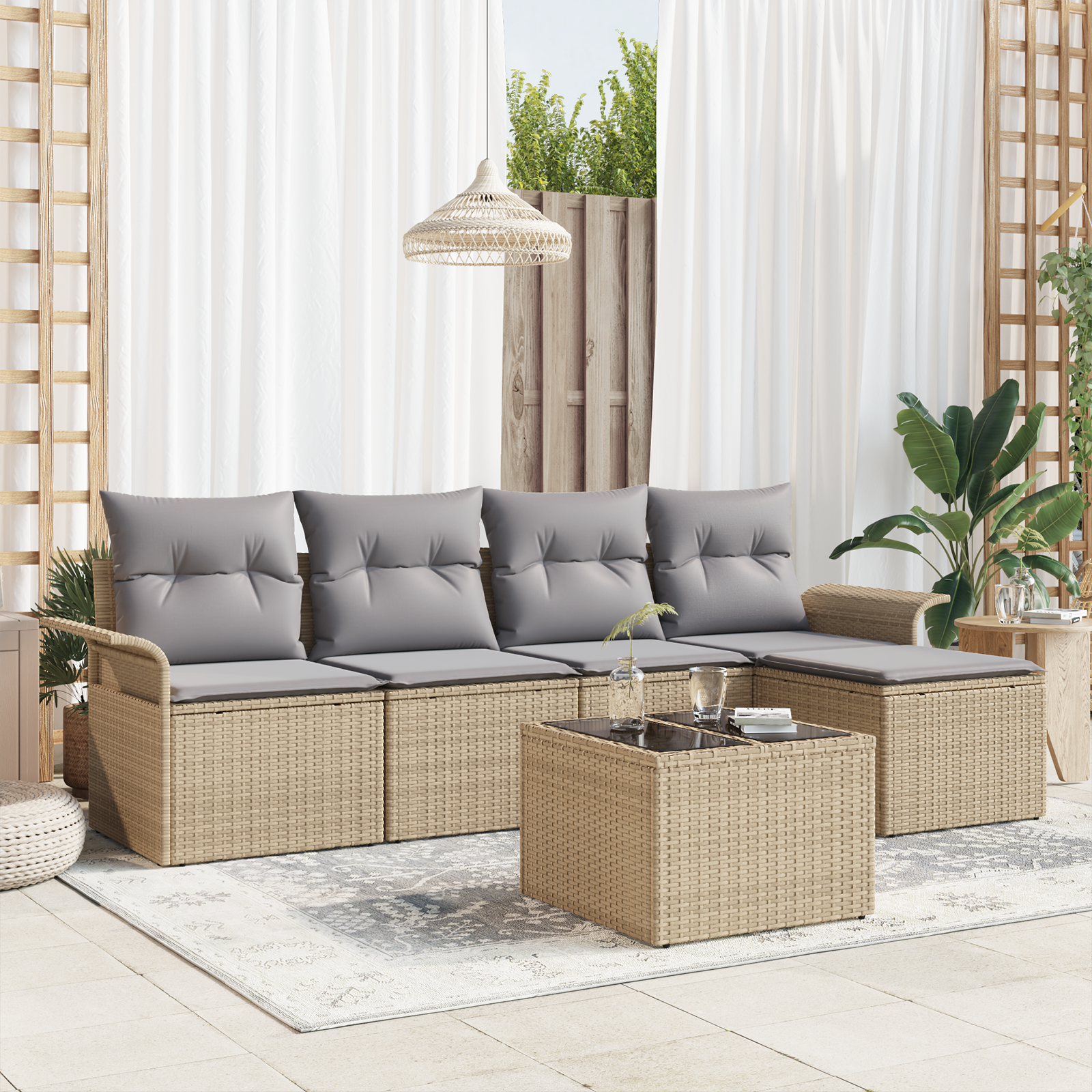 Sada zahradních pohovek s polštářem 6 pcs Béžová polyratan