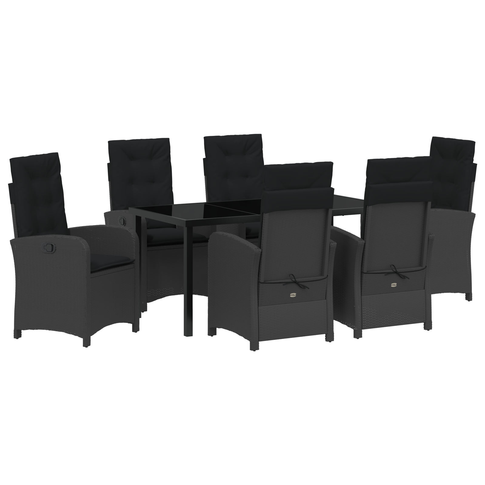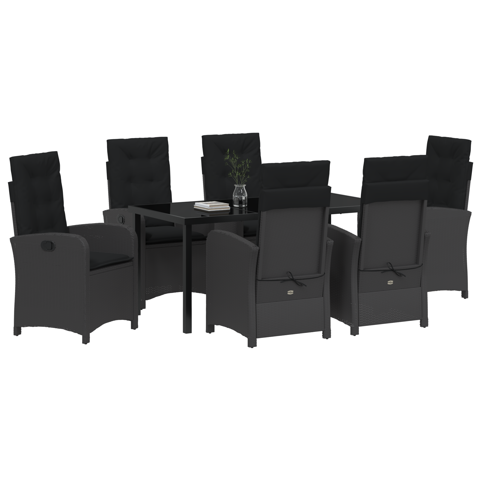 Zahradní jídelní souprava s polštářem 7 pcs Černá polyratan