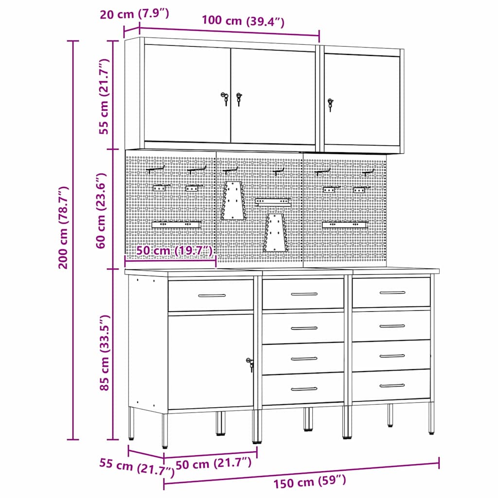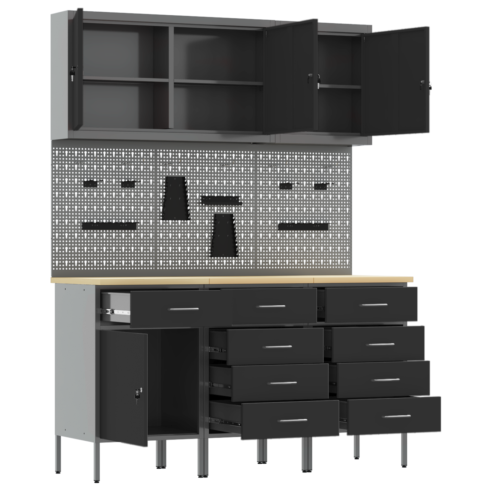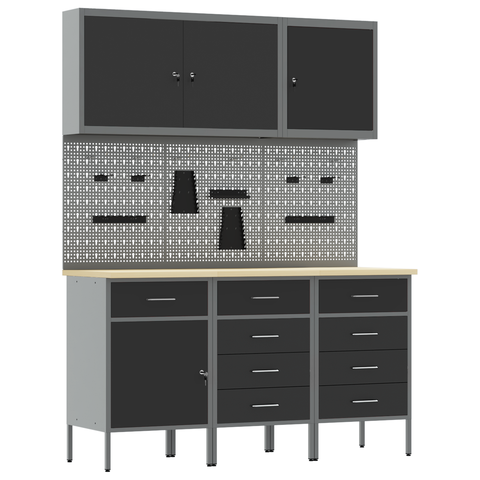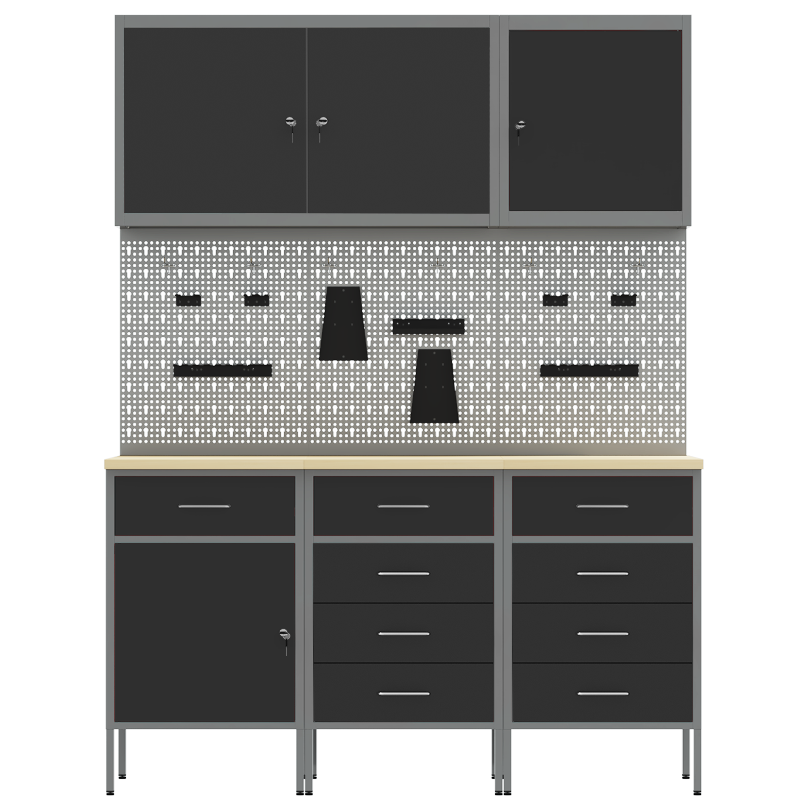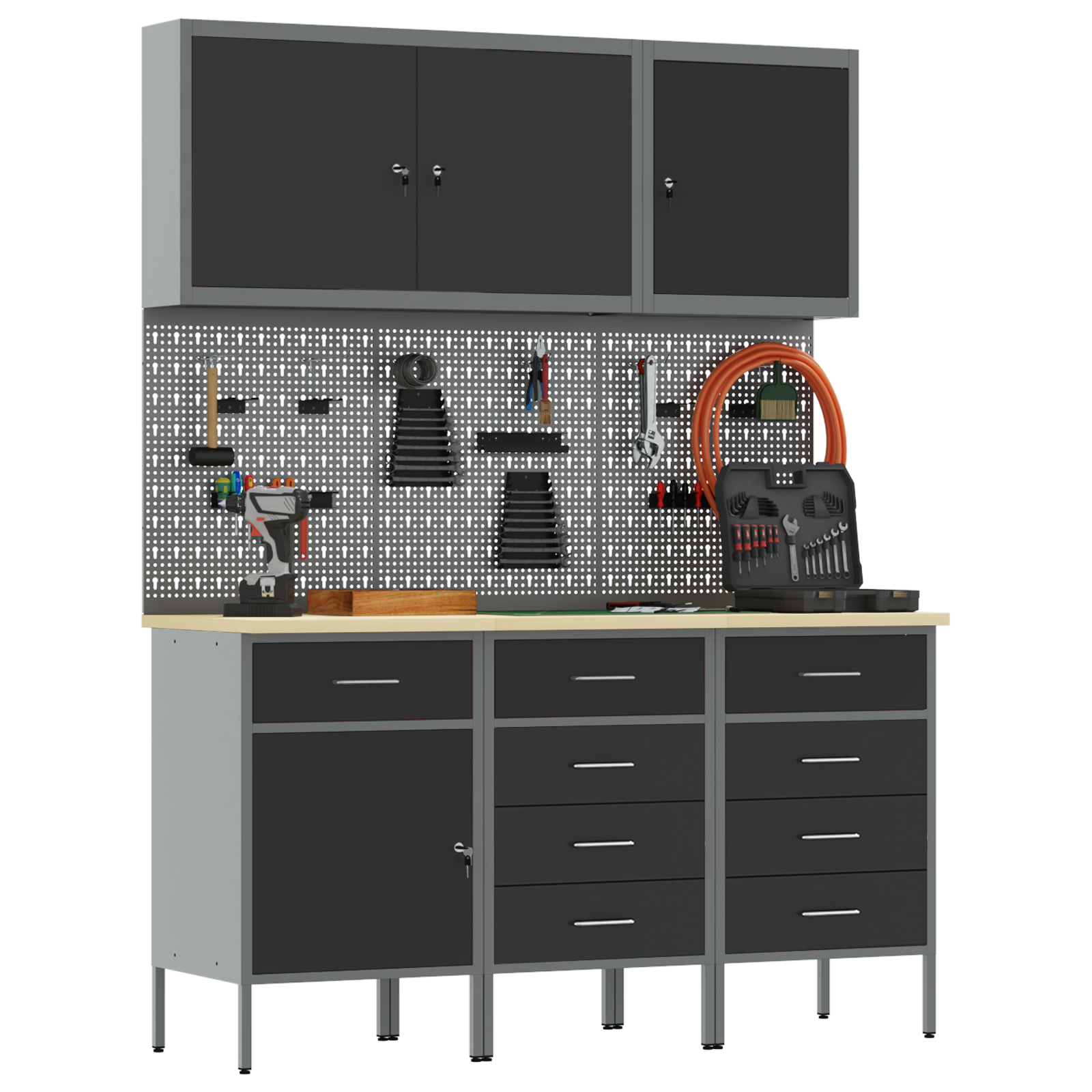 • Víceúčelové úložiště: Skříň má spoustu oddělení, šuplíků a polic, což nabízí skvělá organizační řešení. Efektivně uspořádá nástroje a materiály, což vám usnadní práci a zajistí, že všechno bude na místě. Jejím chytrým designem vyhovíte různým potřebám, od velkých nástrojů po malá příslušenství, takže je nepostradatelná pro uspořádané pracovní prostory.