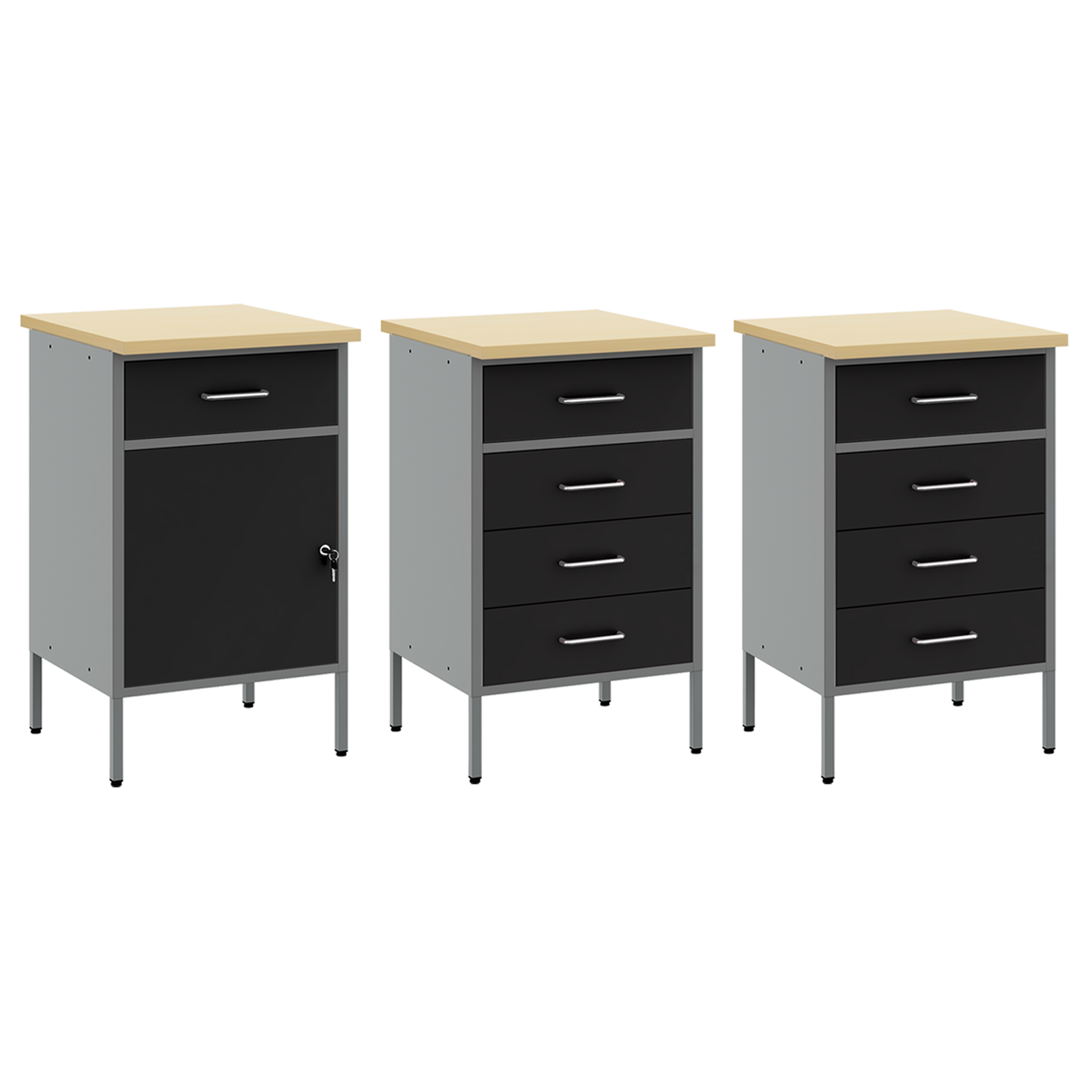 • Ocelový rám: Tento skříň s inženýrským dřevem a ocelí zaručuje pevnost a dlouhou životnost. Silný rám poskytuje solidní základ pro těžké nástroje a vybavení. I přes impozantní konstrukci se materiály pyšní štíhlým vzhledem, což potěší oko v každé dílně. Údržba je jednoduchá – stačí otřít vlhkým hadříkem, aby skříň vypadala jako nová.