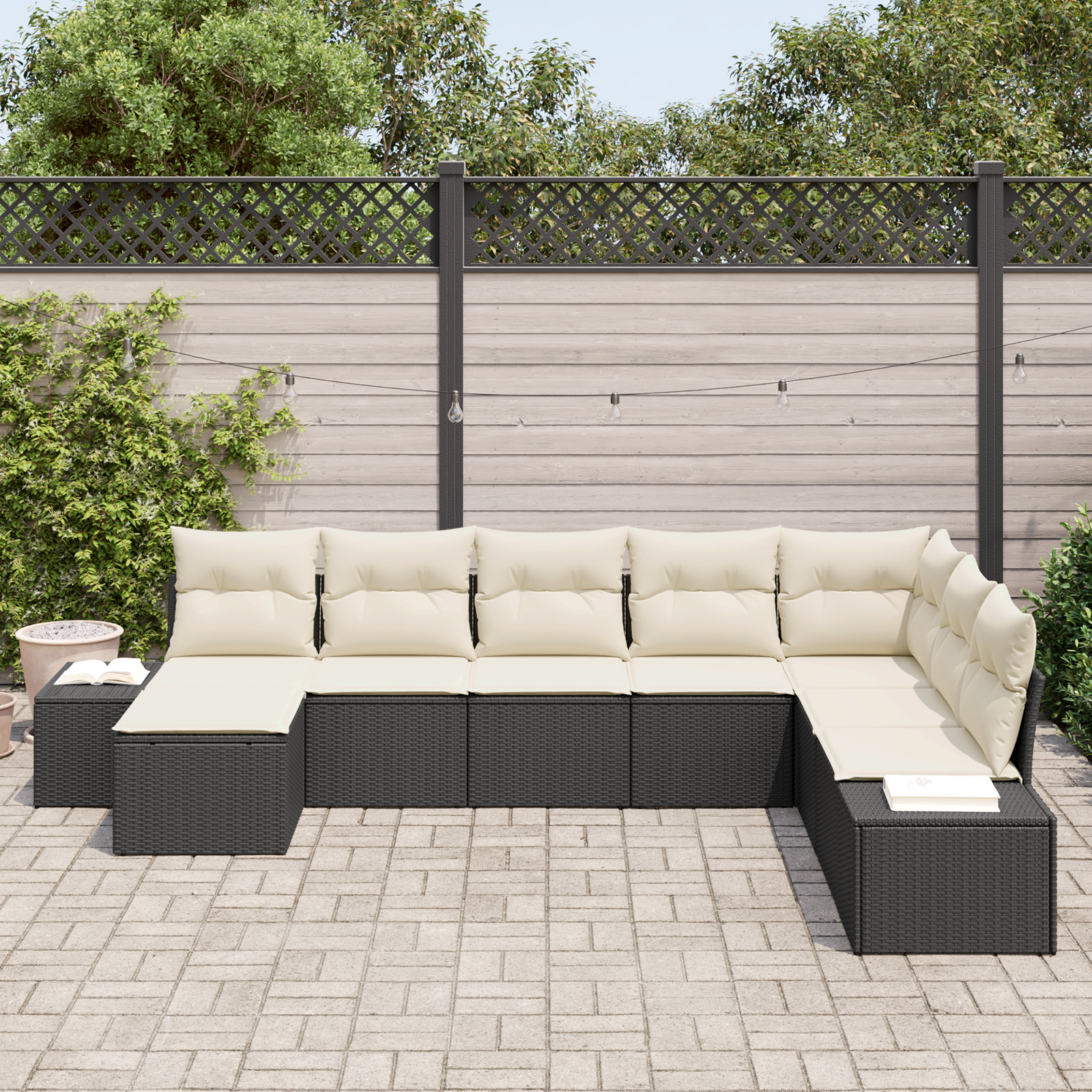 Tenhle zahradní pohovkový set s polštáři z polyratanu přináší moderní vzhled a styl do tvého venkovního prostoru. Ideální pro zahrady a terasy, jeho tkaná textura působí sofistikovaně a odolá změnám počasí. S čistými liniemi a elegantním designem dodá jakémukoli venkovnímu prostředí nádech současného stylu.
