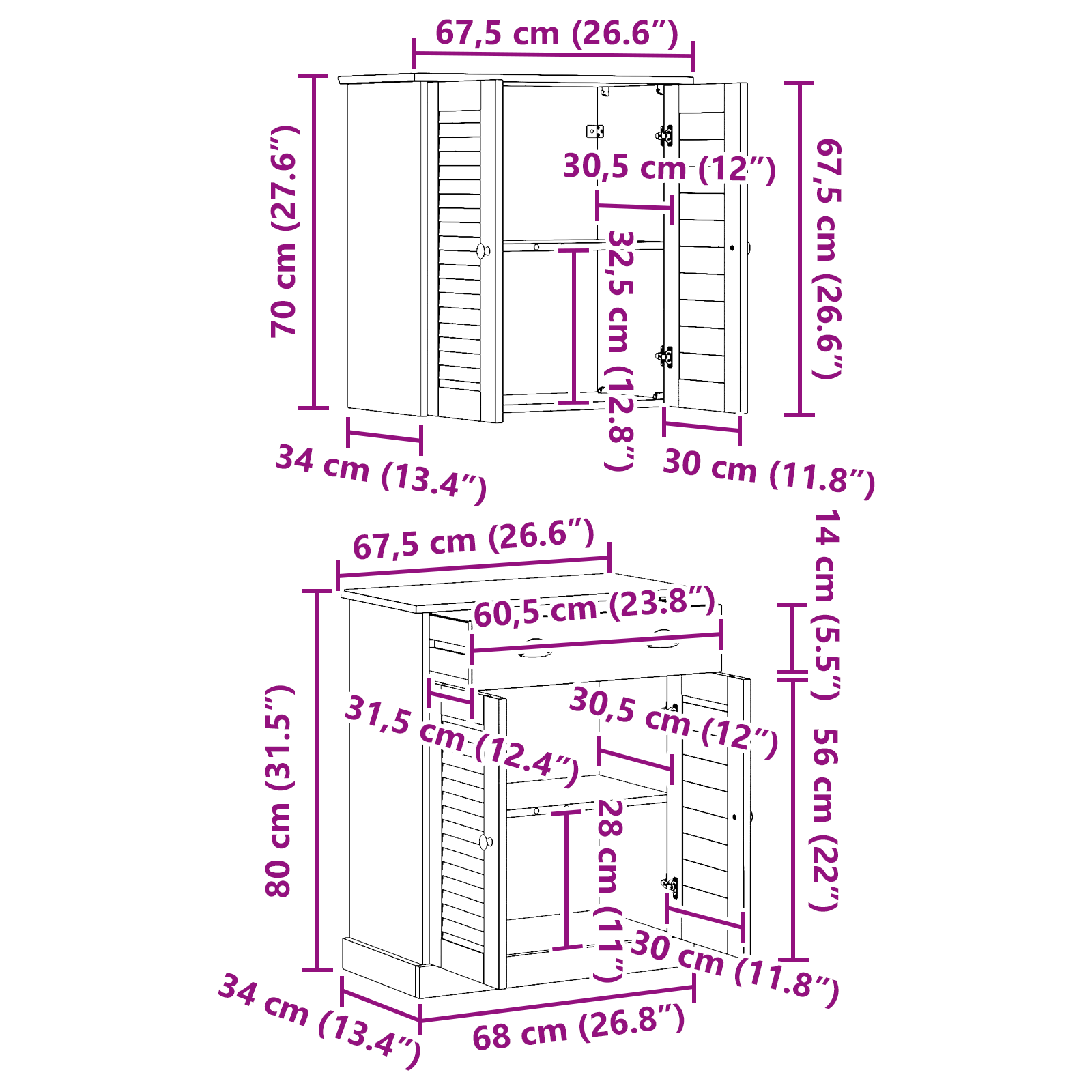 • 1 x Koupelnová skříň: 67.4 x 34 x 80 cm (ŠxHxV)