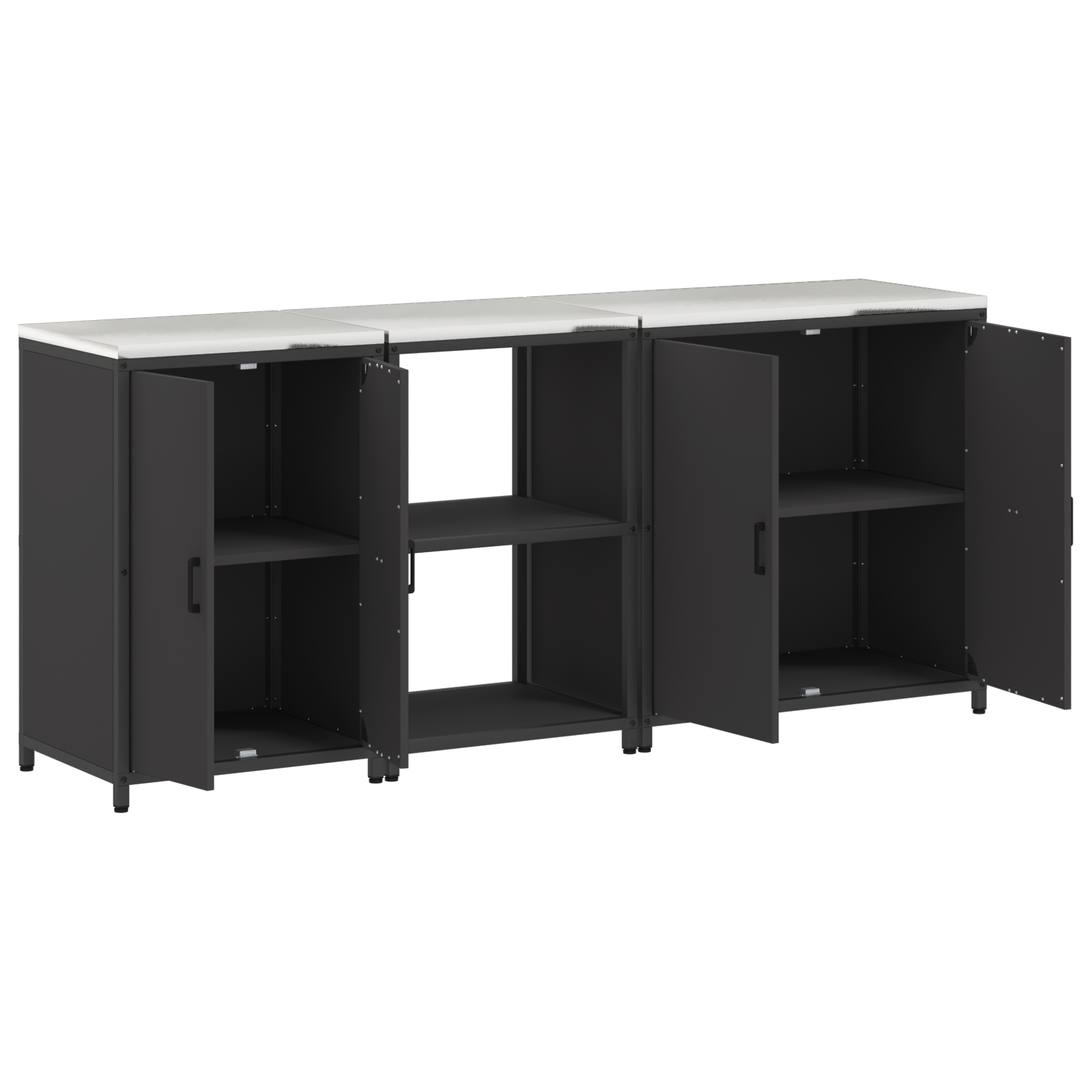 • Zahrnuté komponenty: Skříň má řadu polic a oddělení, které jsou navržené tak, aby splnily různé úložné potřeby — ať už jde o hrnce nebo jídlo. Ocelové policové prvky zajišťují trvanlivost a spolehlivou podporu pro těžké věci. Stabilita je podpořená ocelovým rámem a nohama, plus ocelové dveře nabízejí bezpečné uzavření.