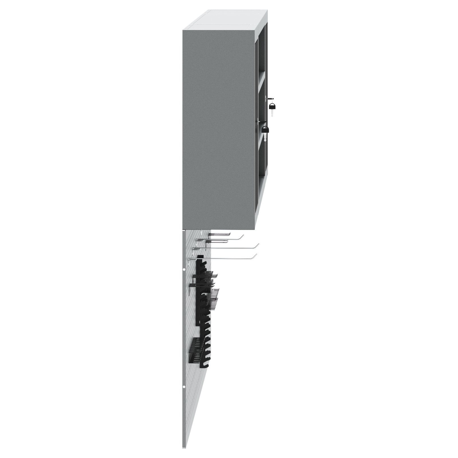 Tahle všestranná nástěnná skříňka na nářadí a souprava desek je nutnost, pokud chcete mít ve své dílně nebo garáži pořádek. S elegantním industriálním designem přináší městský nádech díky práškově lakované ocelové konstrukci a hladkému šedému povrchu. Určená do vnitřních prostor, skříňka skvěle uskladní nářadí, které bude přehledně a snadno dostupné. Integrovaná deska také zvyšuje funkčnost, protože umožňuje přizpůsobit si uspořádání nářadí podle vlastních potřeb.