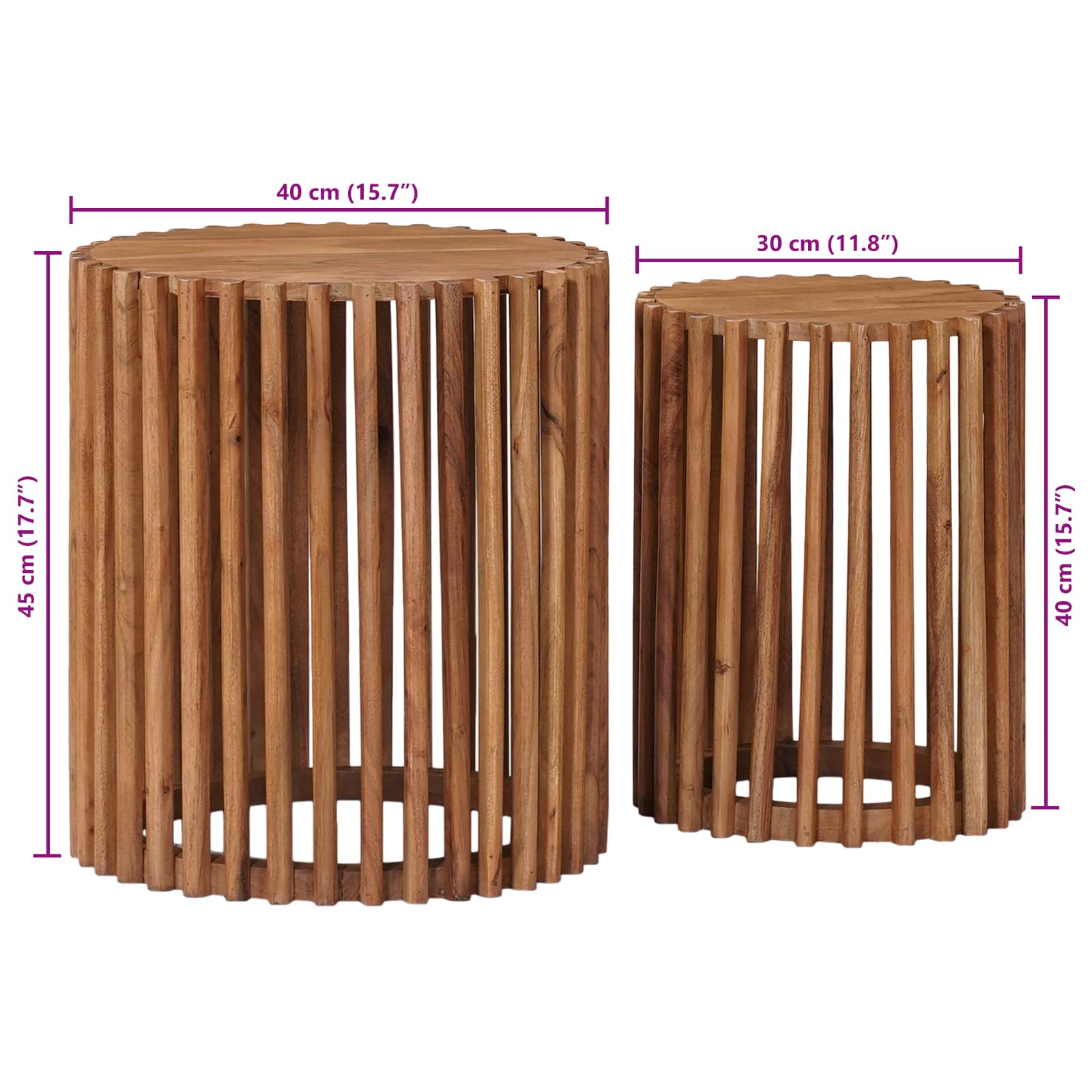 Tento set odkládacích stolků nabízí skvělé spojení moderního designu a praktické funkčnosti, ideální pro jakýkoliv obývací pokoj. S jasnými liniemi a minimalistickým stylem dodávají stolky šťavnatý nádech a variabilitu, takže se hodí do každého prostoru a poskytují potřebný prostor pro každodenní věci.