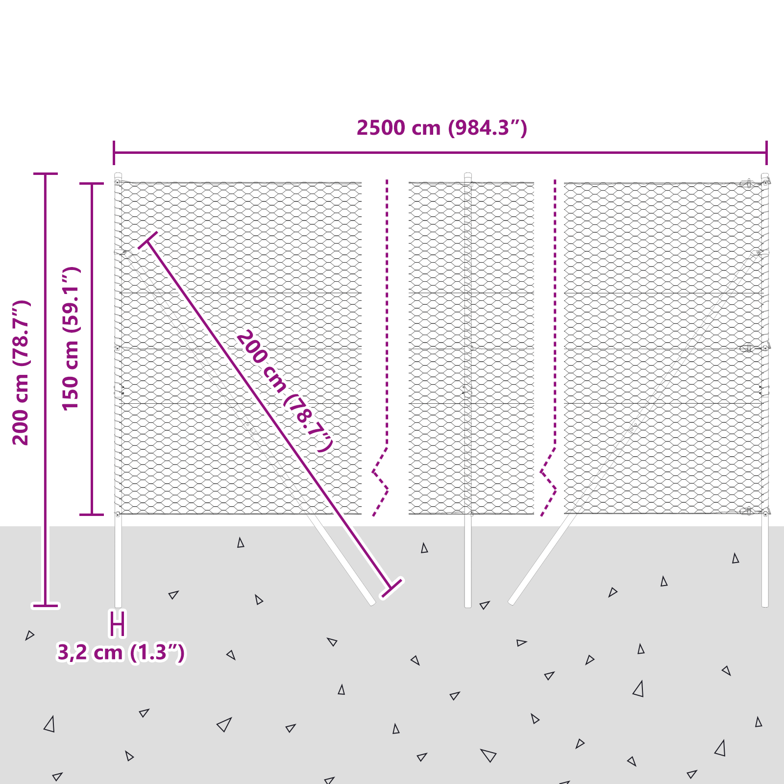 Plotový sloupek. Šedá 25 x 1,5 m (36 mm síť) Ocel