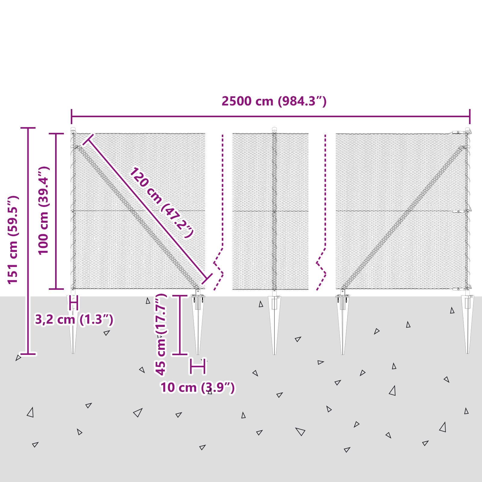 Plotový sloupek. Stříbrná 25 x 1 m (13 mm síťovina) Ocel