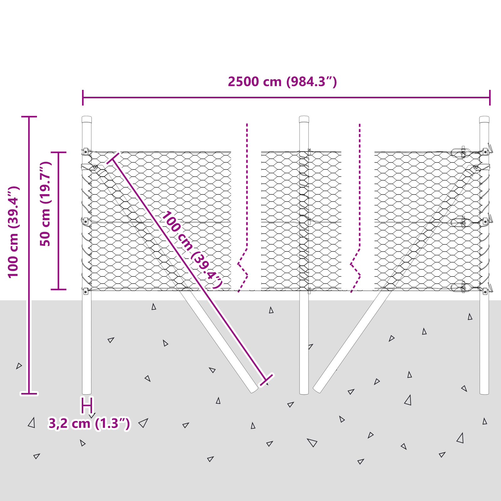 • Celkové rozměry: 2500 x 3,2 x 50 cm (D x Š x V)
