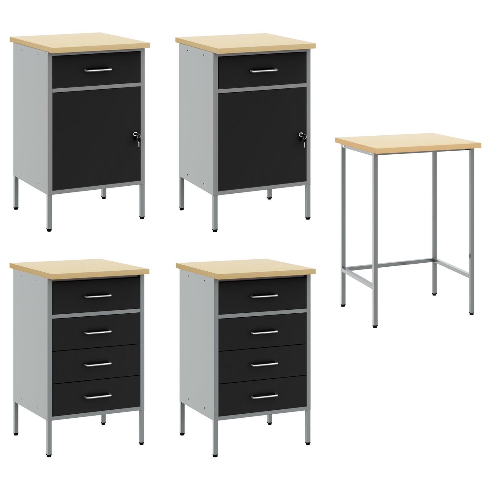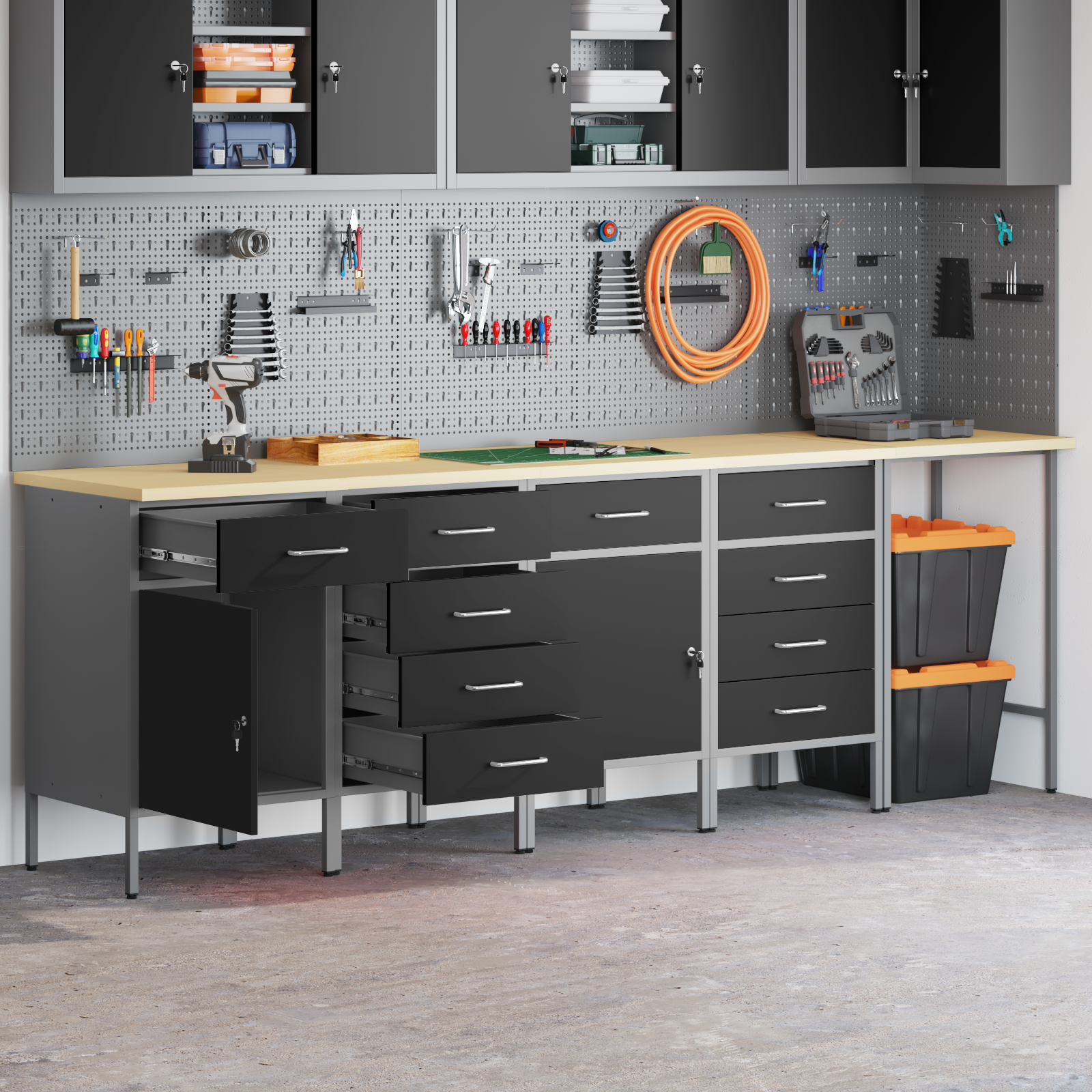 Tato odolná pracovní skříňka je skvělým, stylovým řešením pro organizaci nářadí v dílně. Její moderní vzhled se čistými liniemi a minimem zdobení spojuje funkčnost s atraktivním designem, čímž dělá každou dílnu hezčí a profesionálnější.