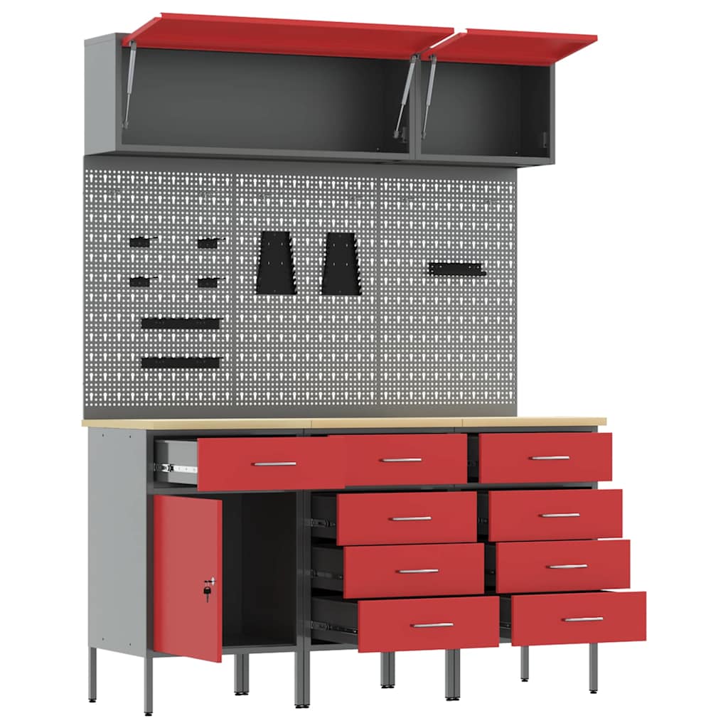 Sada pracovní skříně se zásuvkou s úložištěm 8 pcs Červená