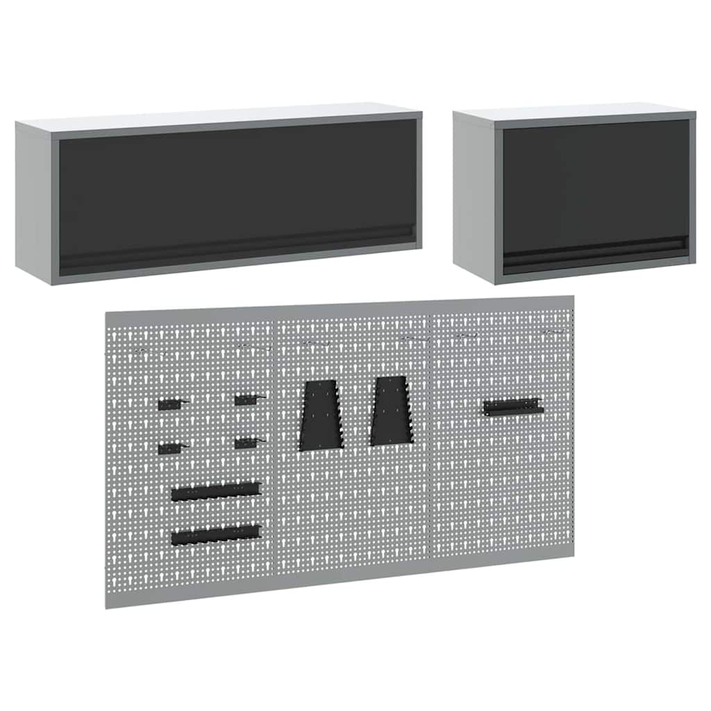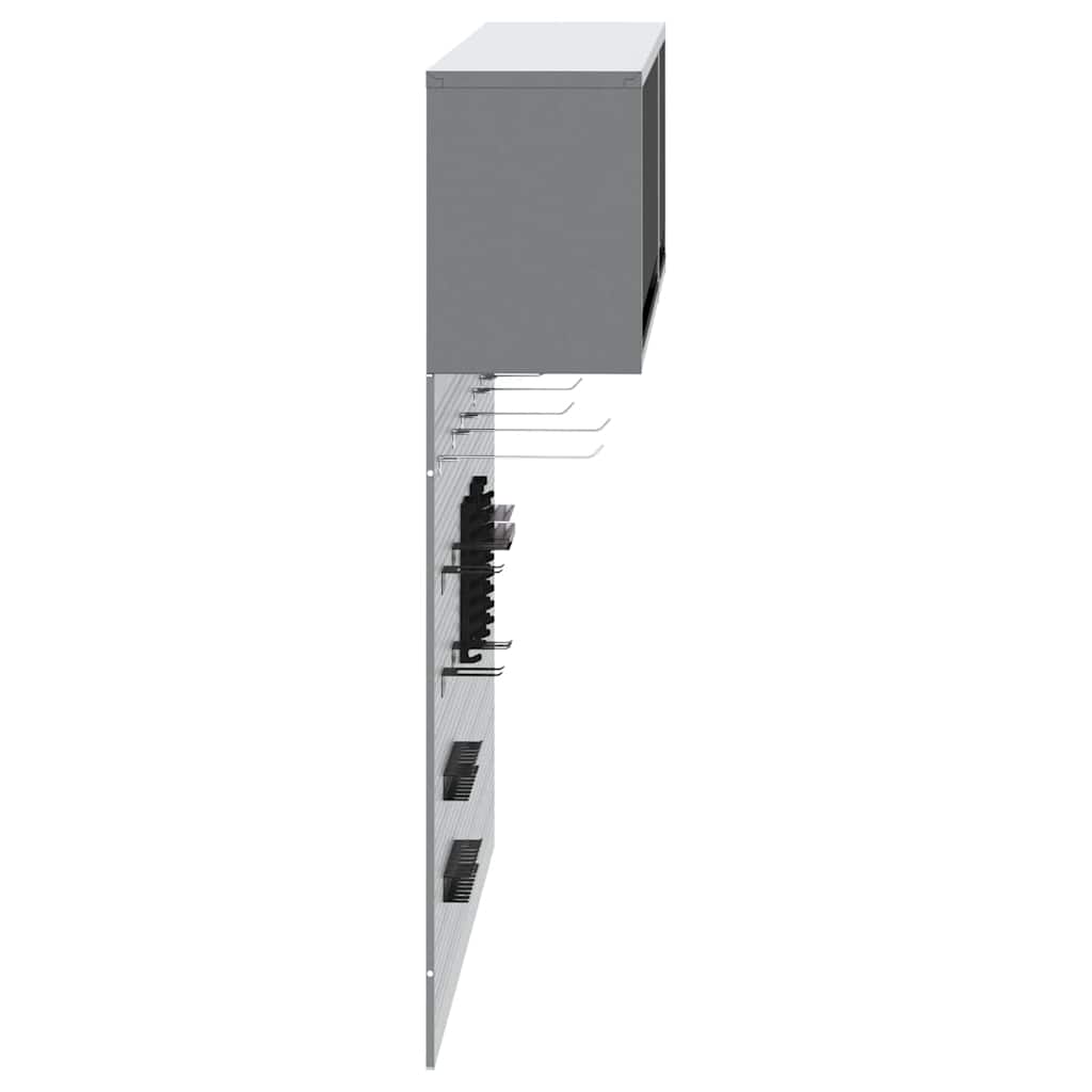 Tahle všestranná nástěnná skříňka na nářadí a souprava desek je nutnost, pokud chcete mít ve své dílně nebo garáži pořádek. S elegantním industriálním designem přináší městský nádech díky práškově lakované ocelové konstrukci a hladkému šedému povrchu. Určená do vnitřních prostor, skříňka skvěle uskladní nářadí, které bude přehledně a snadno dostupné. Integrovaná deska také zvyšuje funkčnost, protože umožňuje přizpůsobit si uspořádání nářadí podle vlastních potřeb.