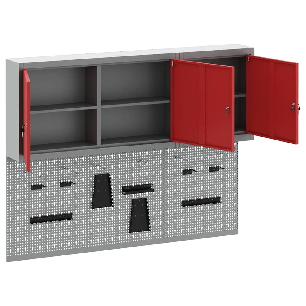 • Komplexní komponenty: Skříňka má kovové police z práškově lakované oceli, které snesou hodně hmotnosti a časté používání. Kovové závěsné desky umožňují snadné přizpůsobení organizace nářadí podle různých typů a velikostí nářadí.