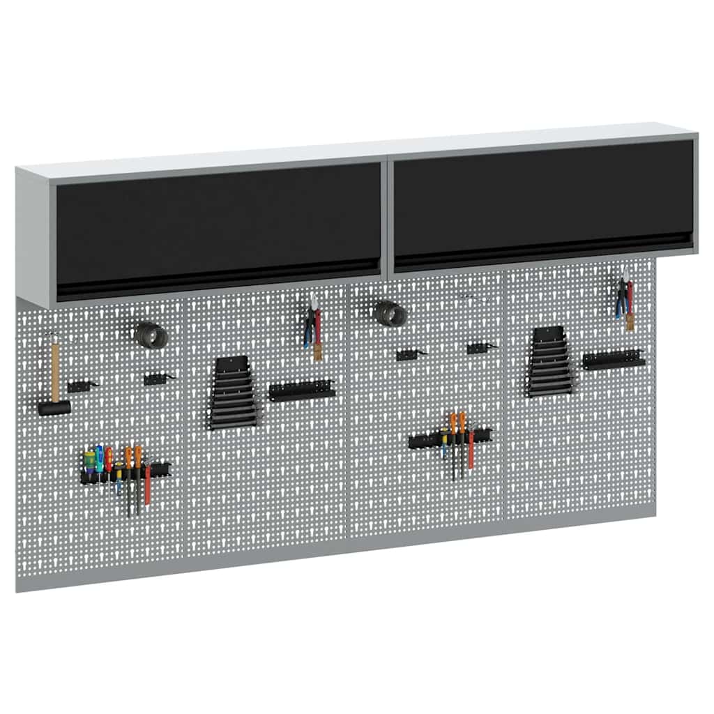 Tahle všestranná nástěnná skříňka na nářadí a souprava desek je nutnost, pokud chcete mít ve své dílně nebo garáži pořádek. S elegantním industriálním designem přináší městský nádech díky práškově lakované ocelové konstrukci a hladkému šedému povrchu. Určená do vnitřních prostor, skříňka skvěle uskladní nářadí, které bude přehledně a snadno dostupné. Integrovaná deska také zvyšuje funkčnost, protože umožňuje přizpůsobit si uspořádání nářadí podle vlastních potřeb.